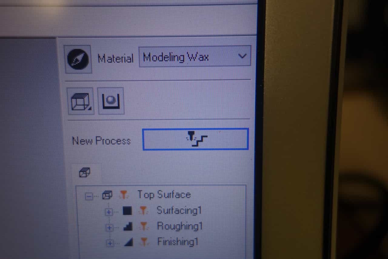 Now to the machining part: I used wax for the mold because is has a smooth surface and does not "suck up" the silicone like wood.