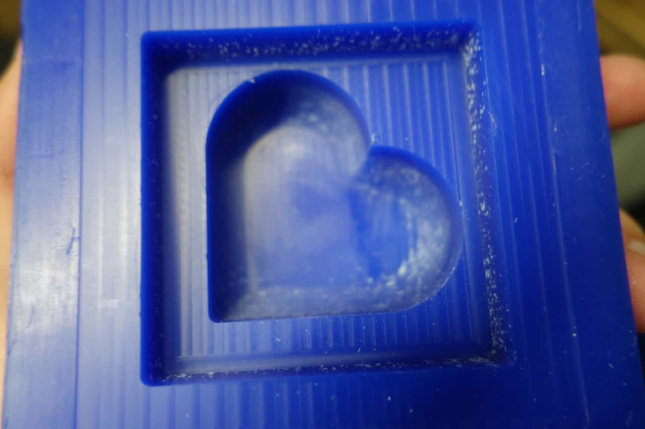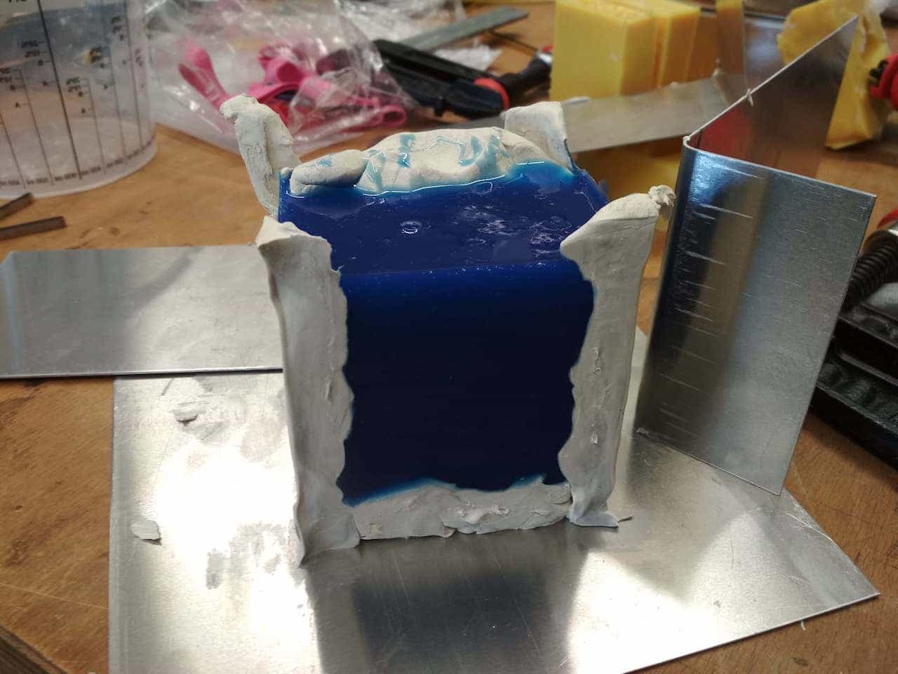 After the silicone was hard I removed the metal mold. Next I carefully removed the dough that was used to seal the corners.