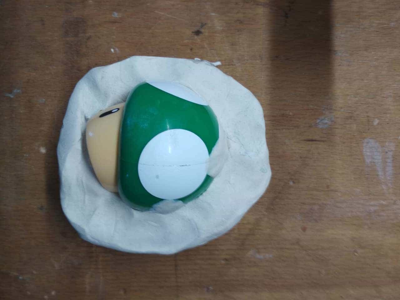 Then I covered one half of the mushroom with dough to make the first half of the mold.