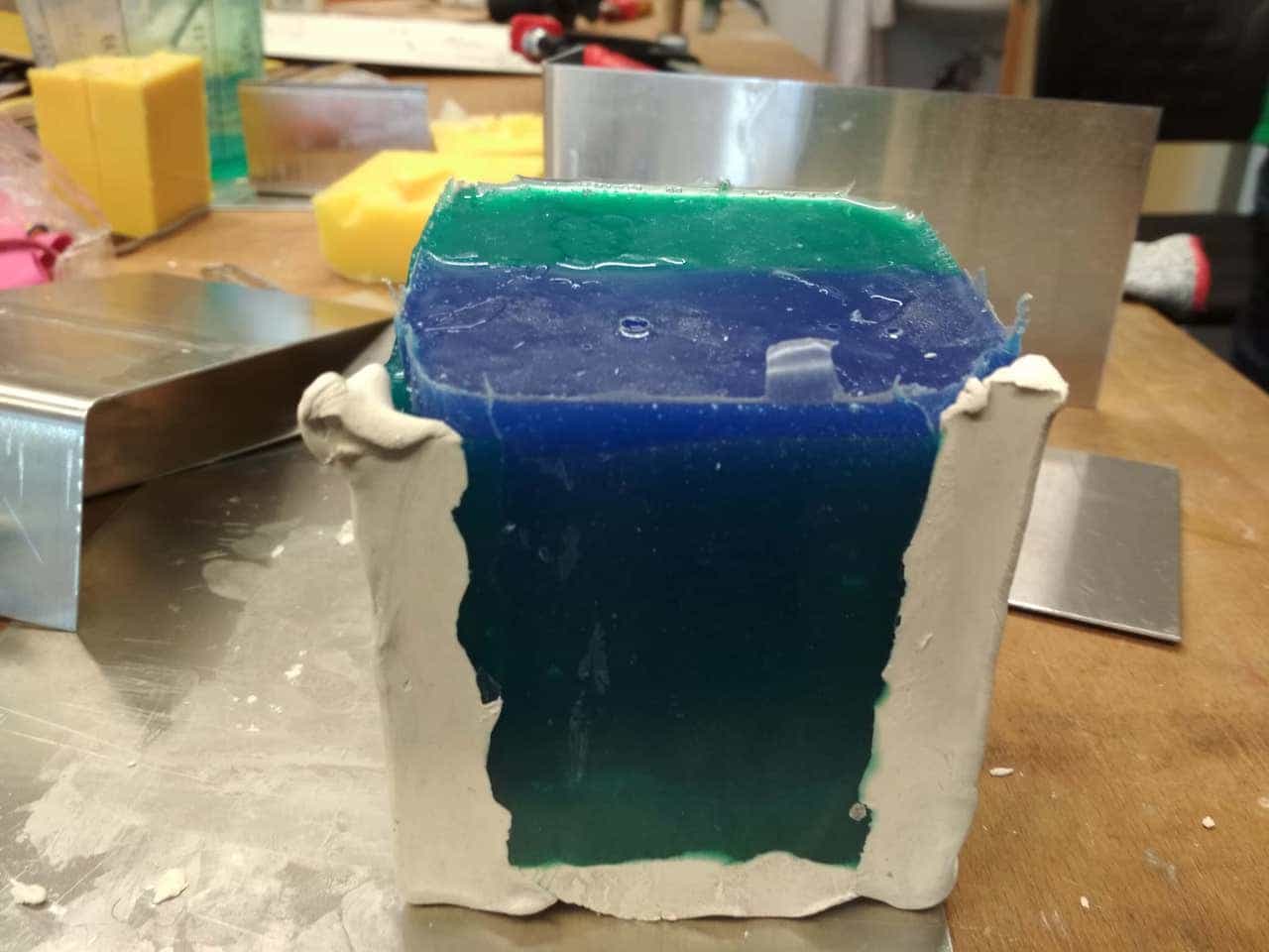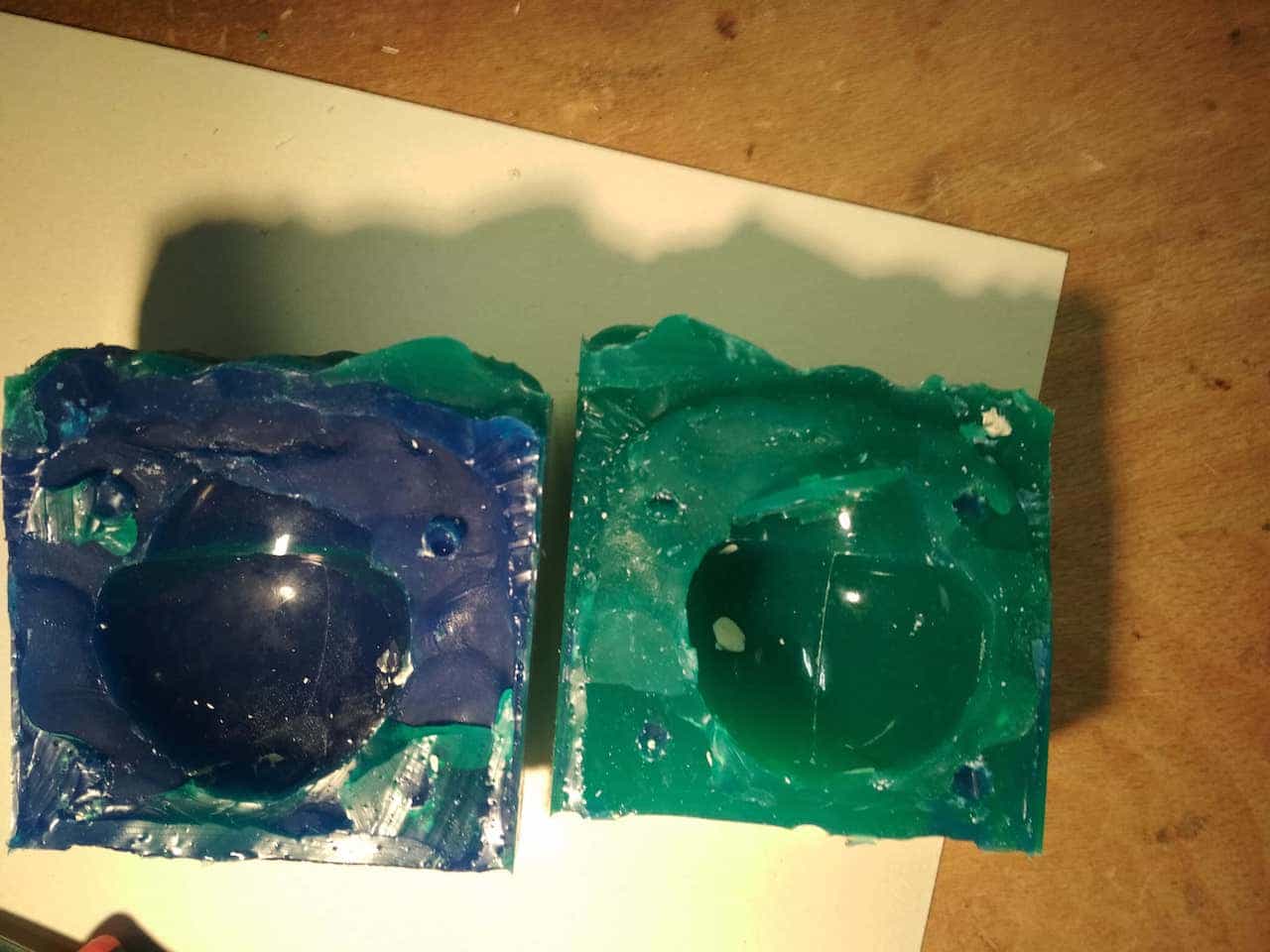 Now withe the two parts separated I removed the every blu silicone from the green mold and vice versa.