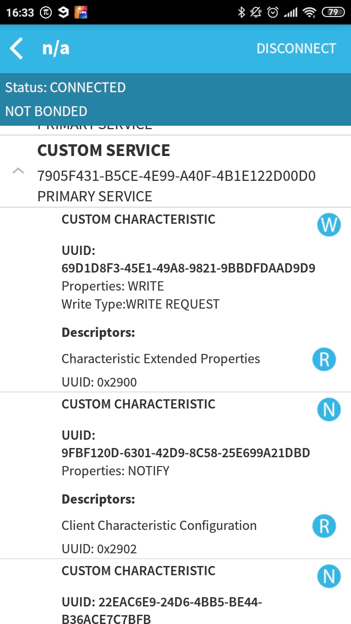 from the list in my case it was named DSD-Tech and hit connect. If you now select the the custom service tab you can "talk" to the BLE module.