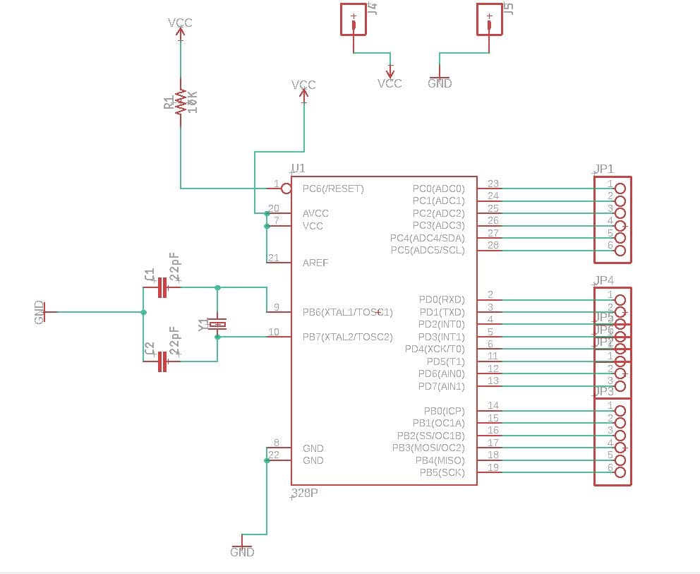 As you can see the changes to the circuit are very minor. I just added a pinheader for each pin of the ATMega.