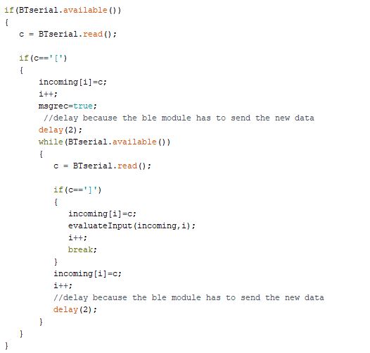 In the code snipped you can see how the bits sent to the BLE module from the phone are read and saved in a buffer.