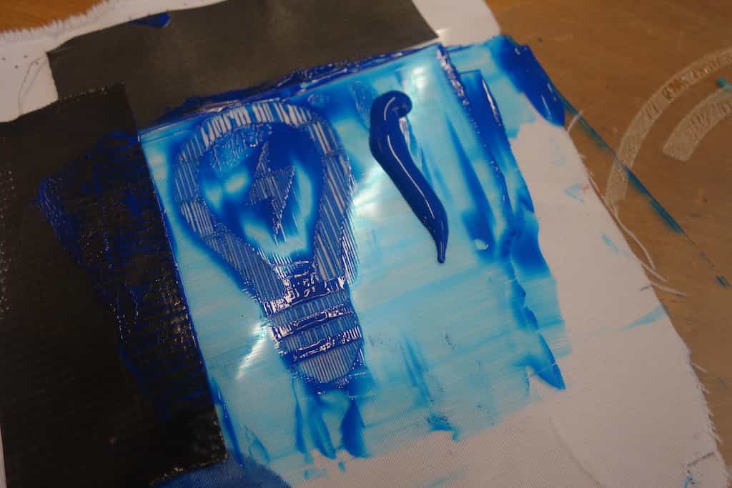 prevents paint staining the surrounding area. Then put some paint next to the sieve onto the foil.
