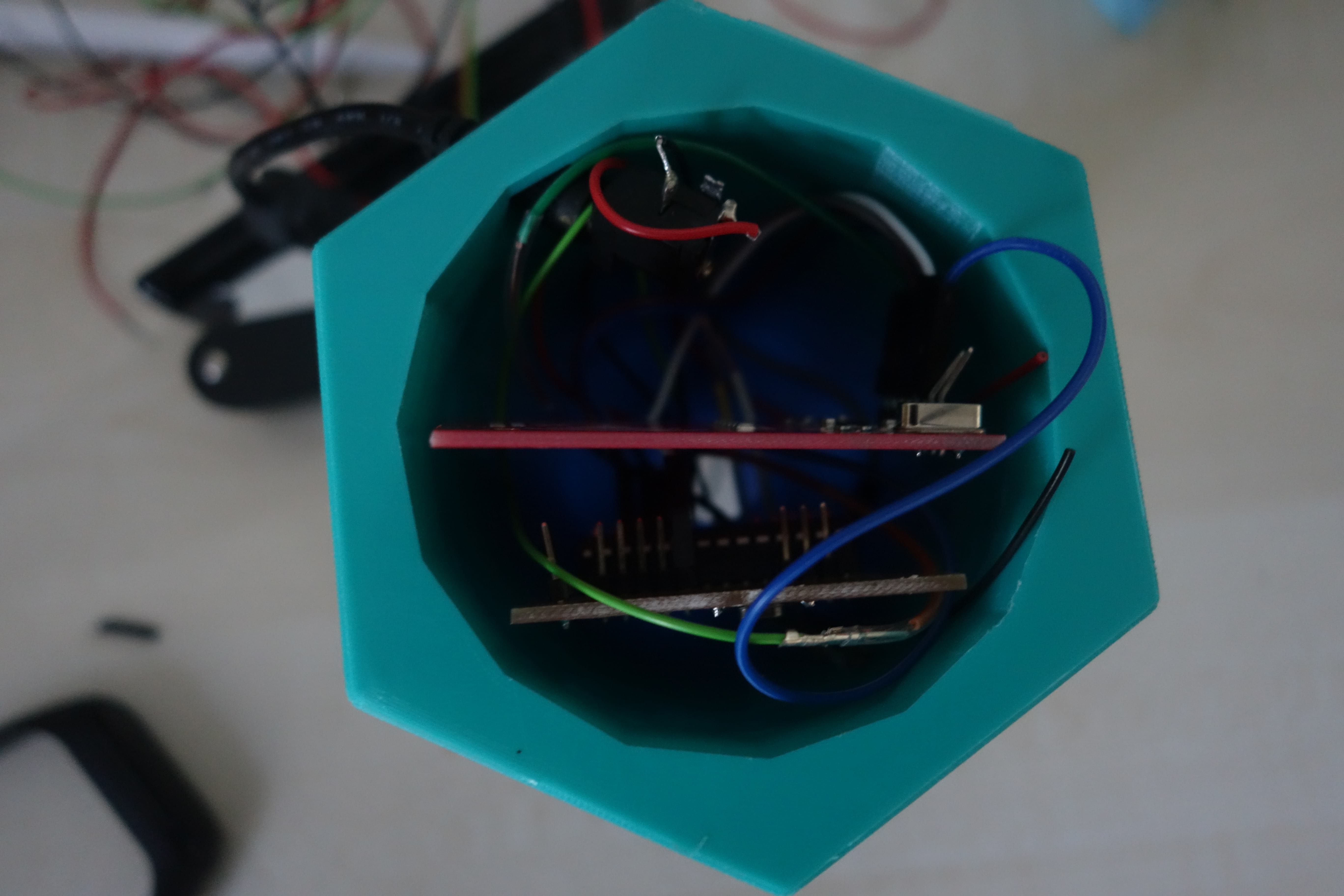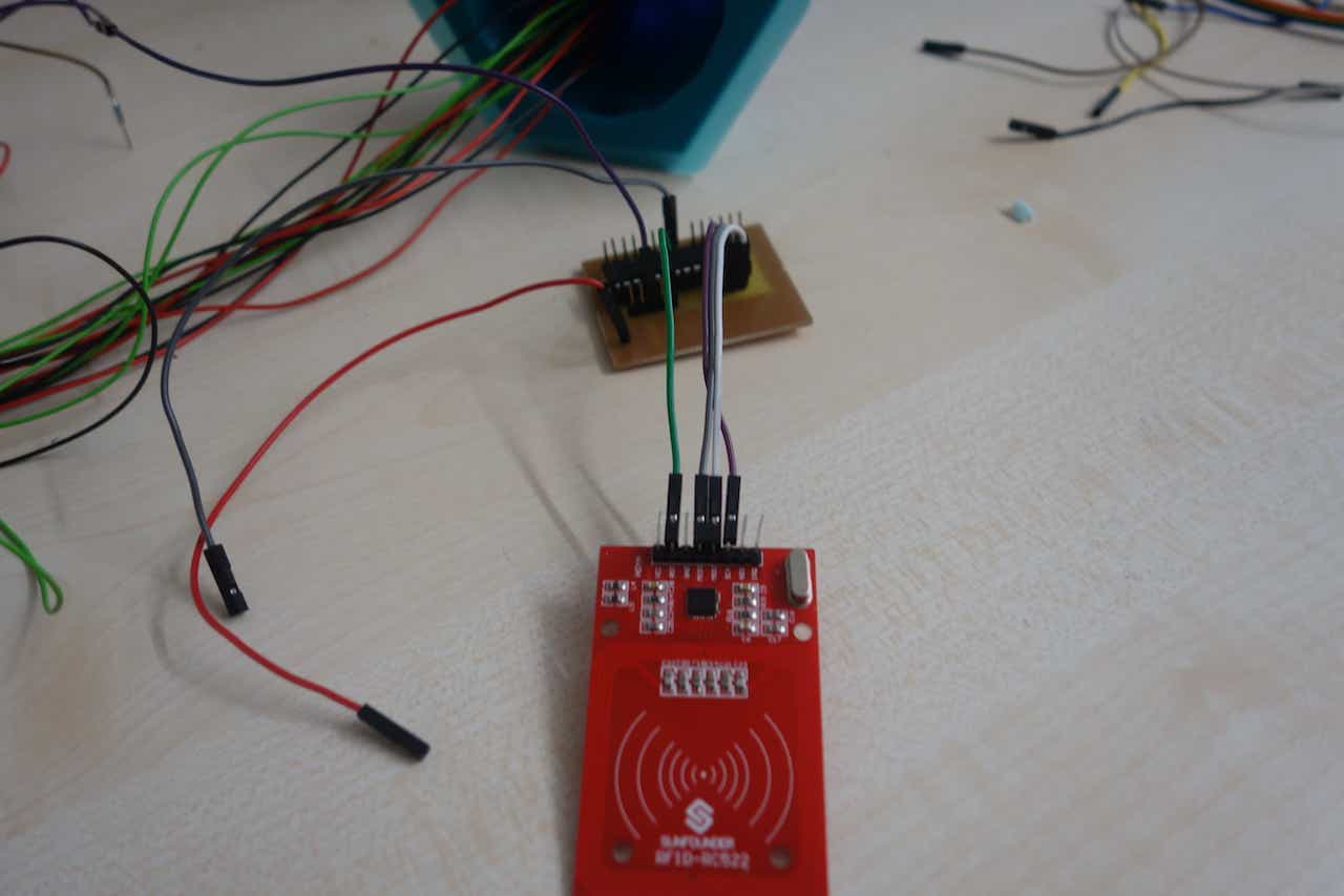 the RFID-sensor. At the top you can see the power plug if this makes any problems just put it next to fakeduino-board.