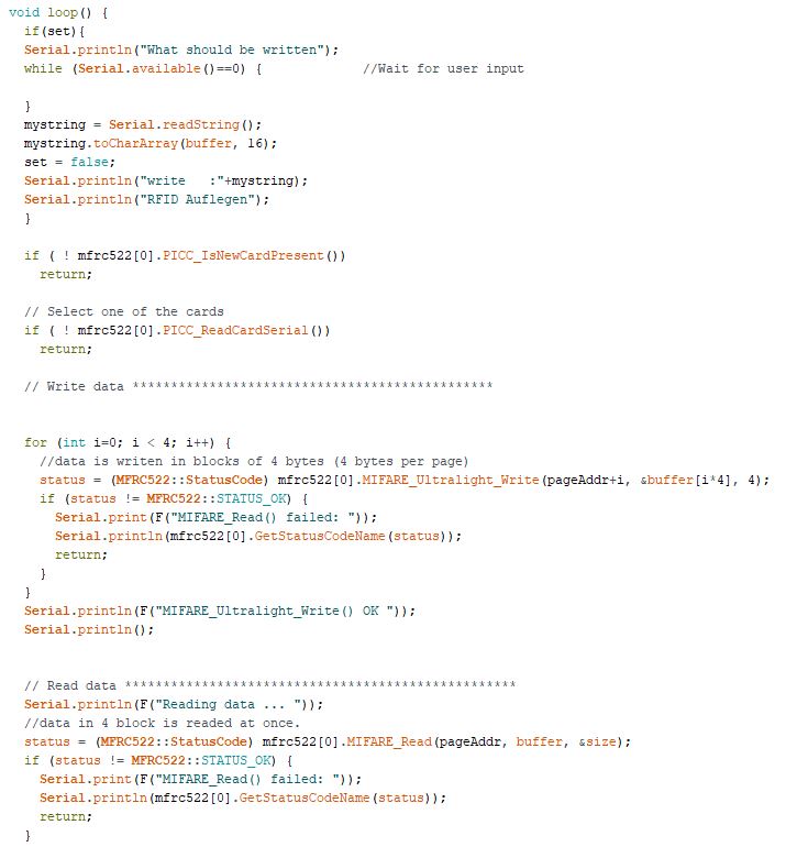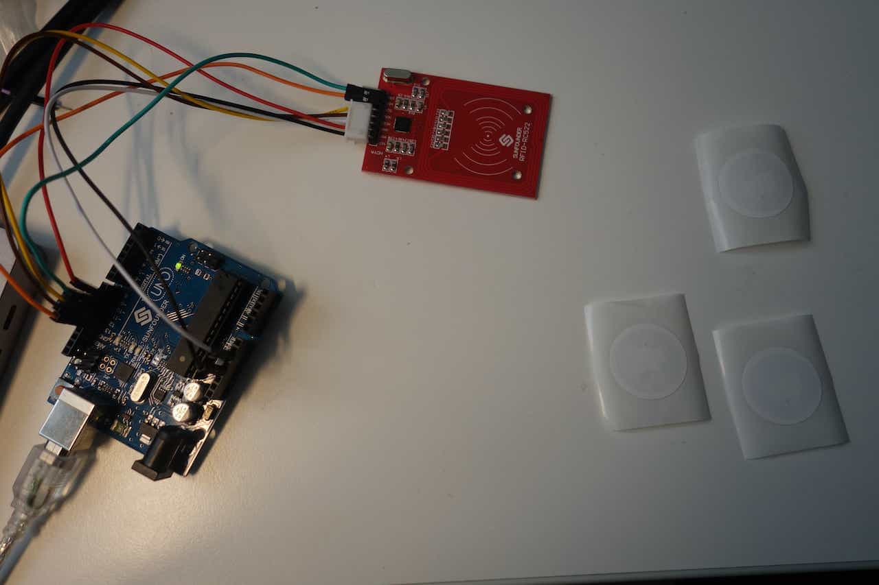 In this project I use a simple RFID transmitter and rewritable Tags. The advantage of the tags is that