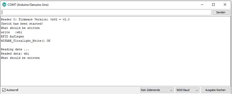 Now I tested everything again. Usually i use an Arduino Uno to test my systems because it has an USB-Serial