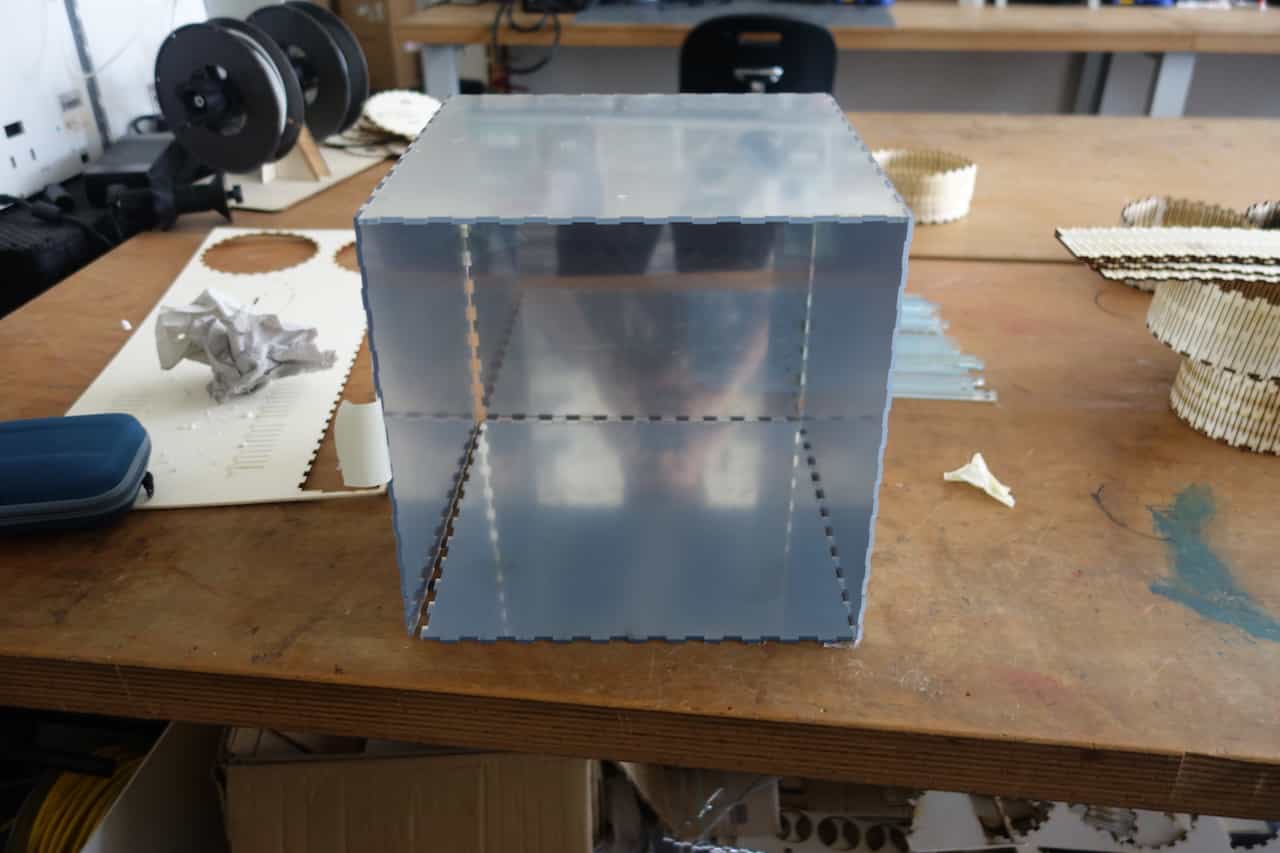 I started by Laser cutting the cube itself. I made the svg with a tool called