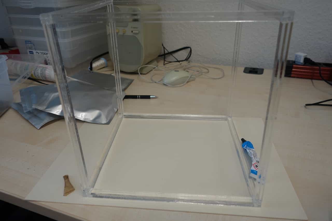 Assemble the corpus like this and glue is together. I recommend that you use special glue for acrylic glass.