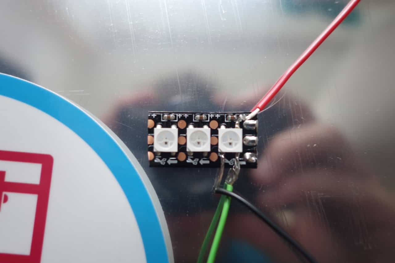 solder the wires directly to the Led like this: green = Data In , Black = GND , red = VCC. If you using
