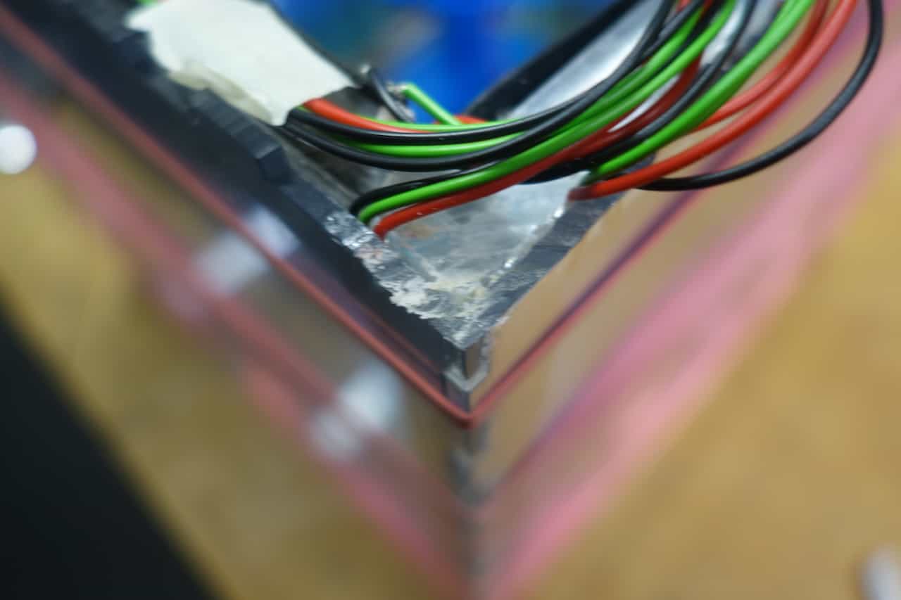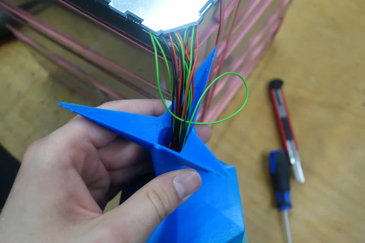 Make a little cutout in the edge were the wires to "leave" the cube. I used a Dremel for this.