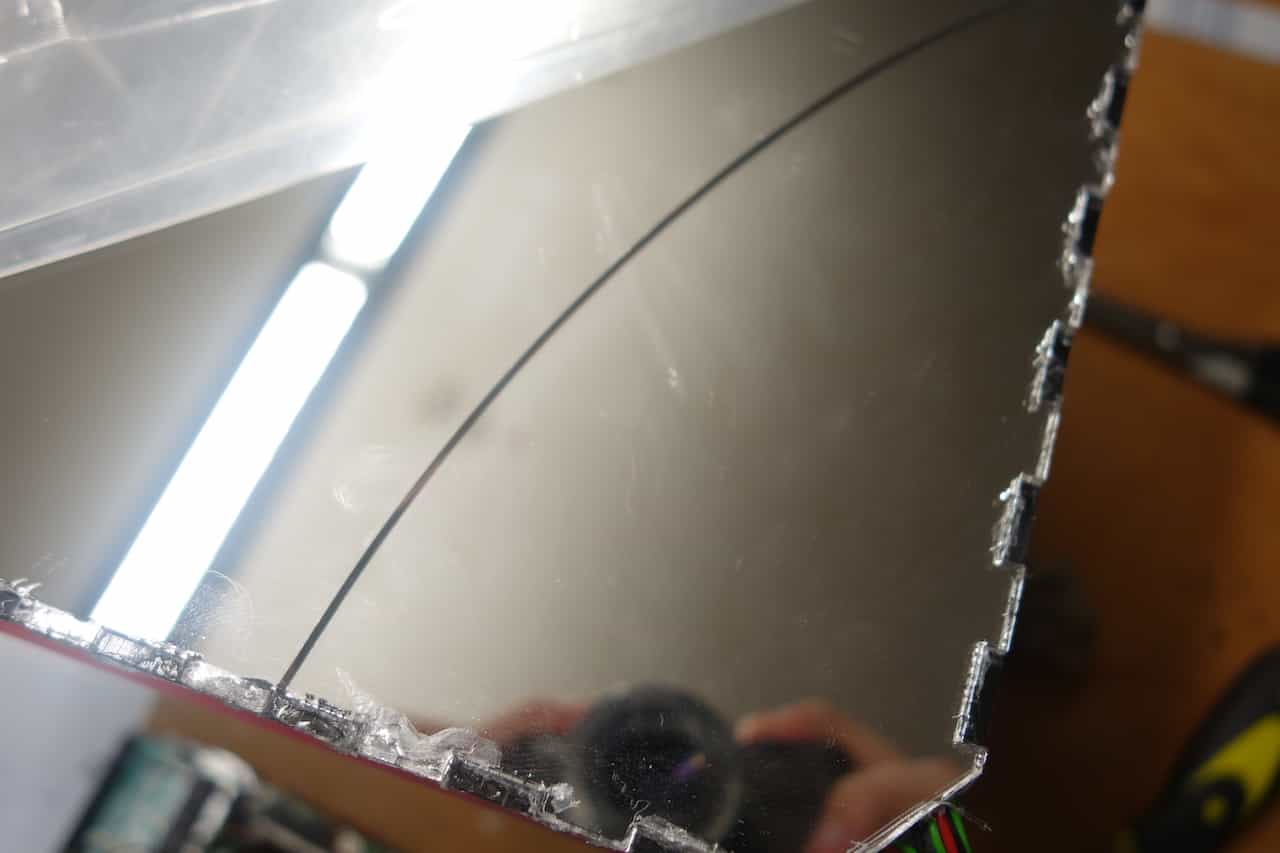 Warning: Do not cut the wires. Sometimes the acrylic glass will melt while cutting so to not touch the cutting