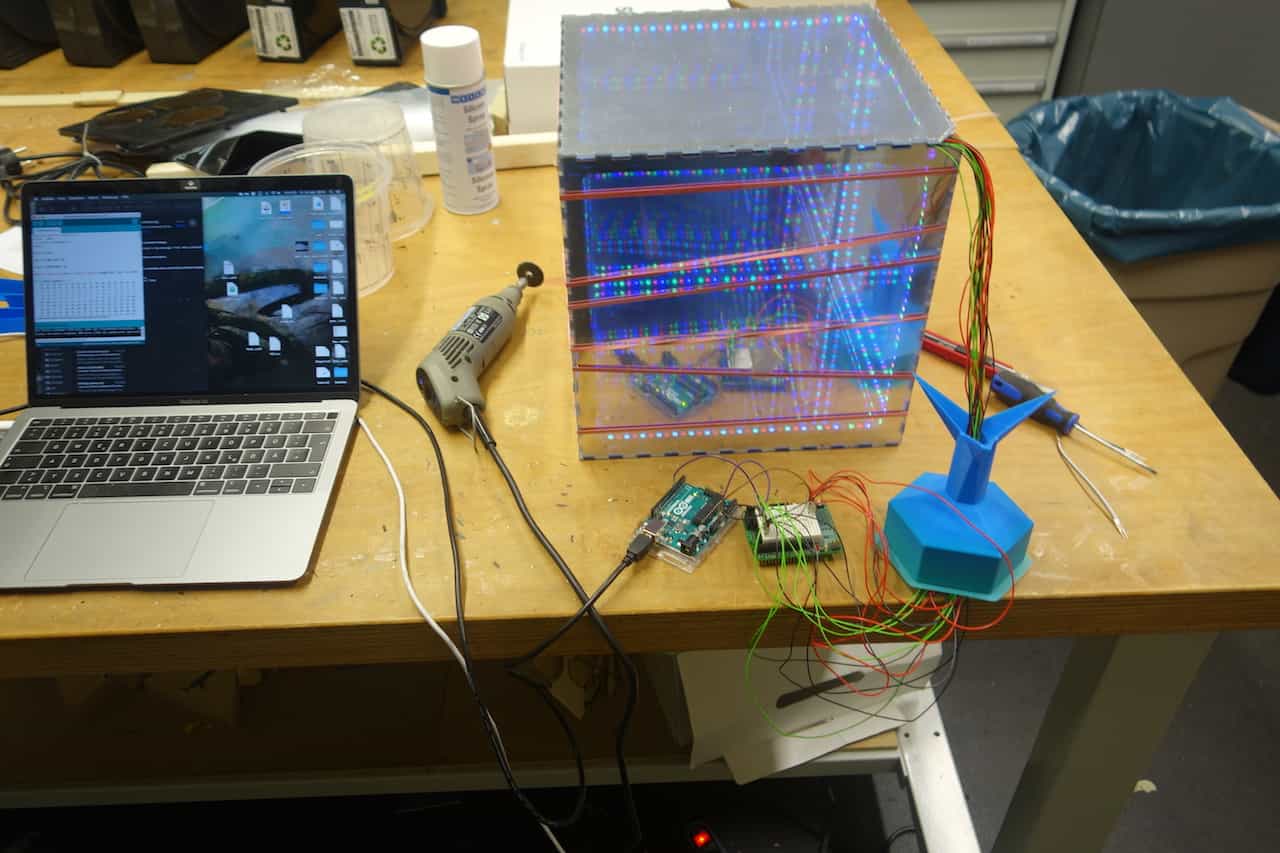 And that's it all that is now left to is shortening the wires turn off the lights and watch your Infinity cube