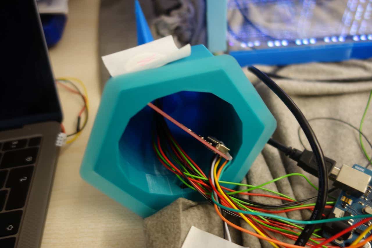 LED cables together to connect each to a single pin. The fakeduino is at the bottom so i does not obstruct