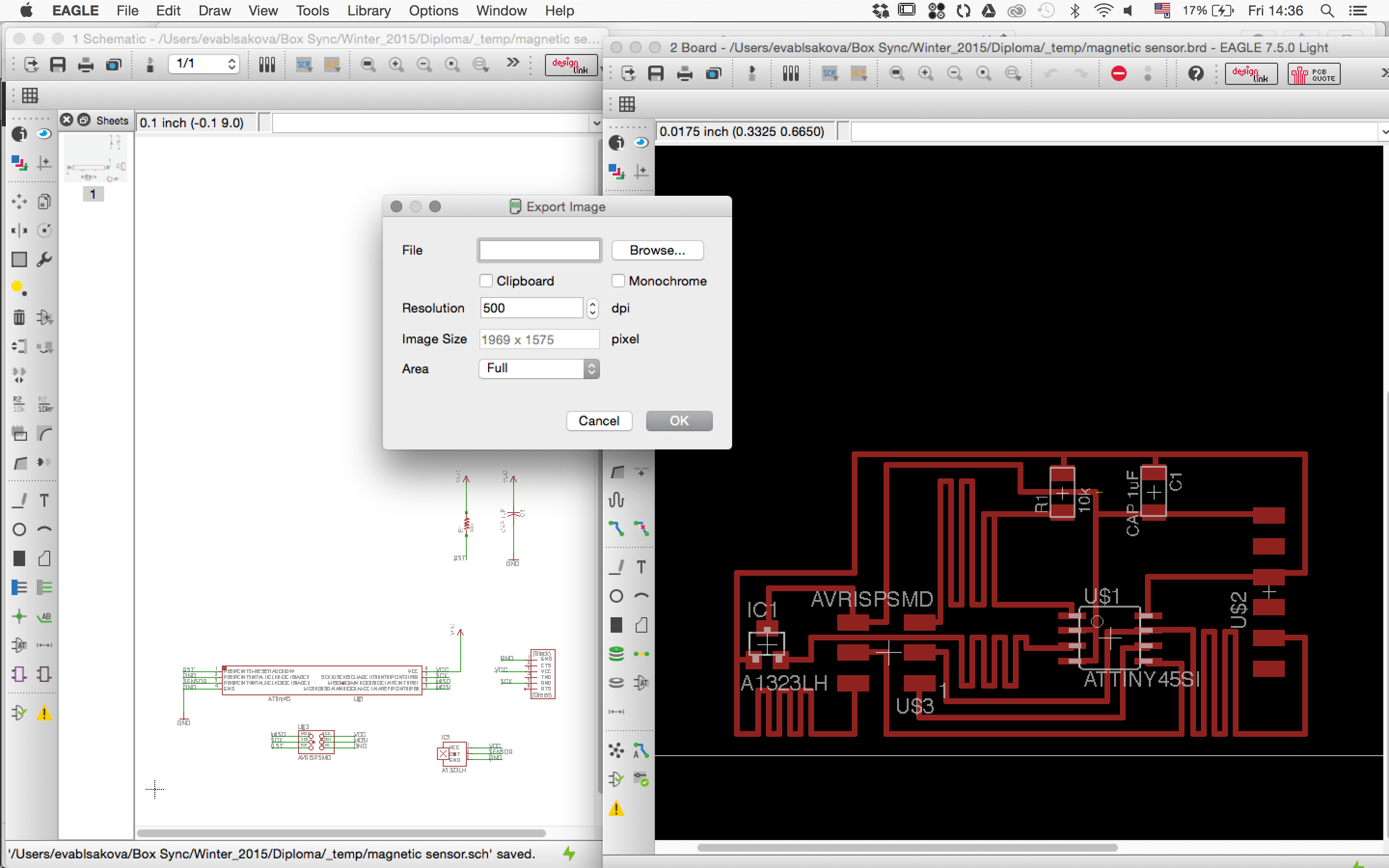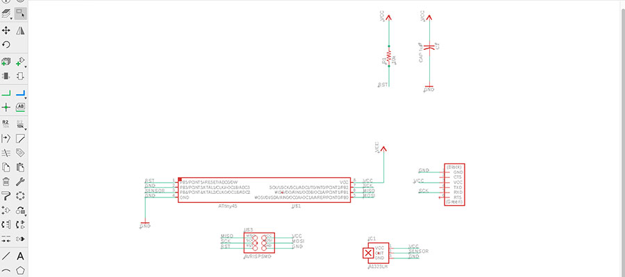 I decided to make the Hall effect Sensor Board. Started with the creation of schematics in Eagle.