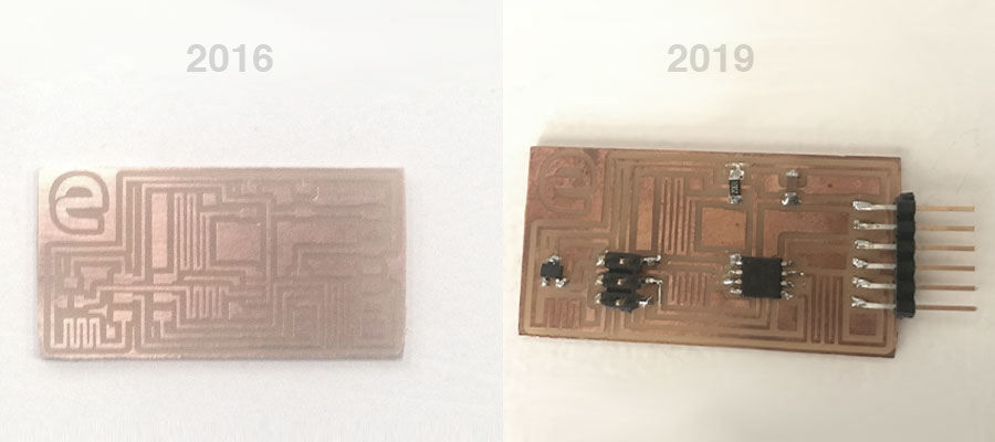 Freshly milled board captured in 2016 vs board with components captured in 2019.