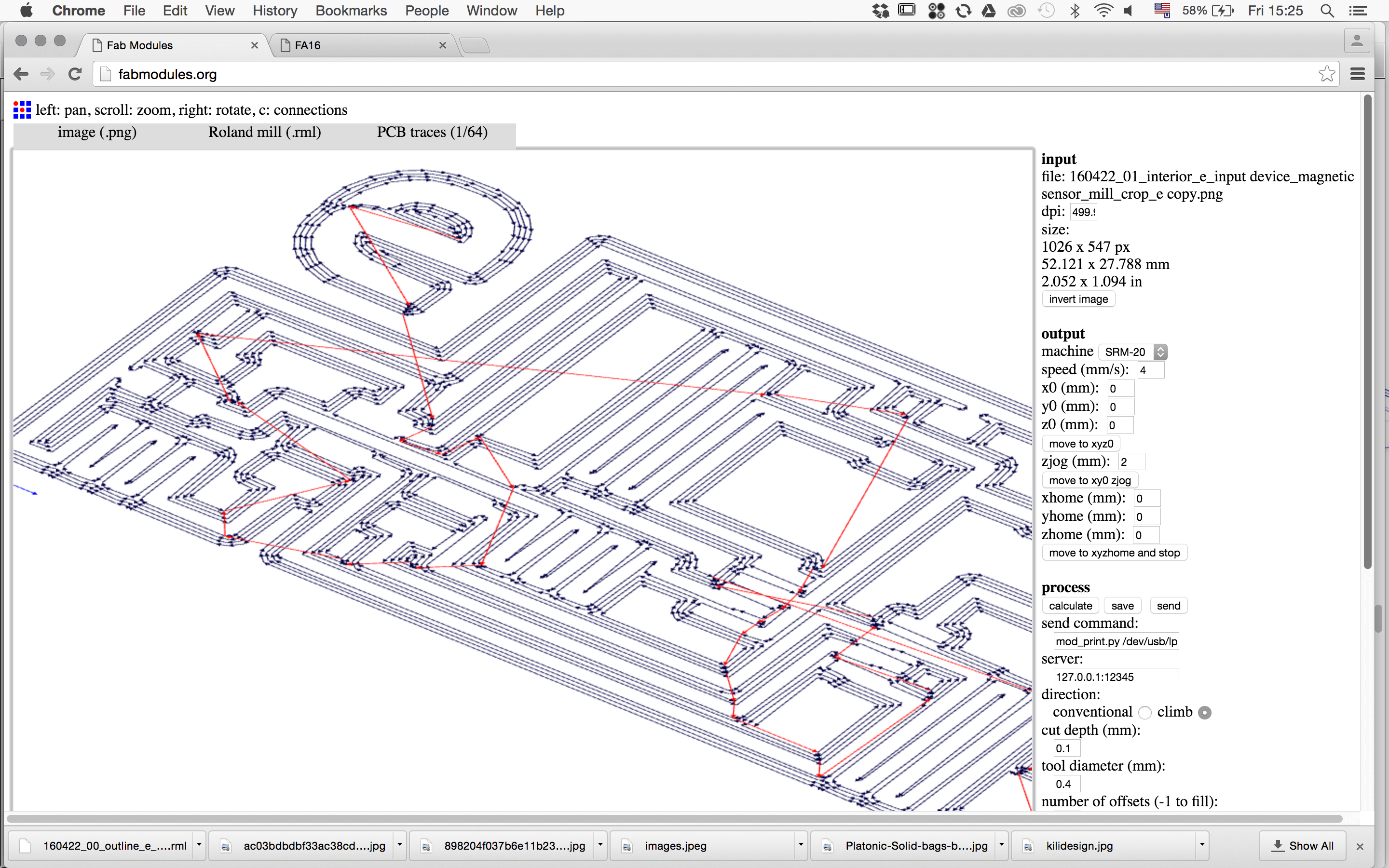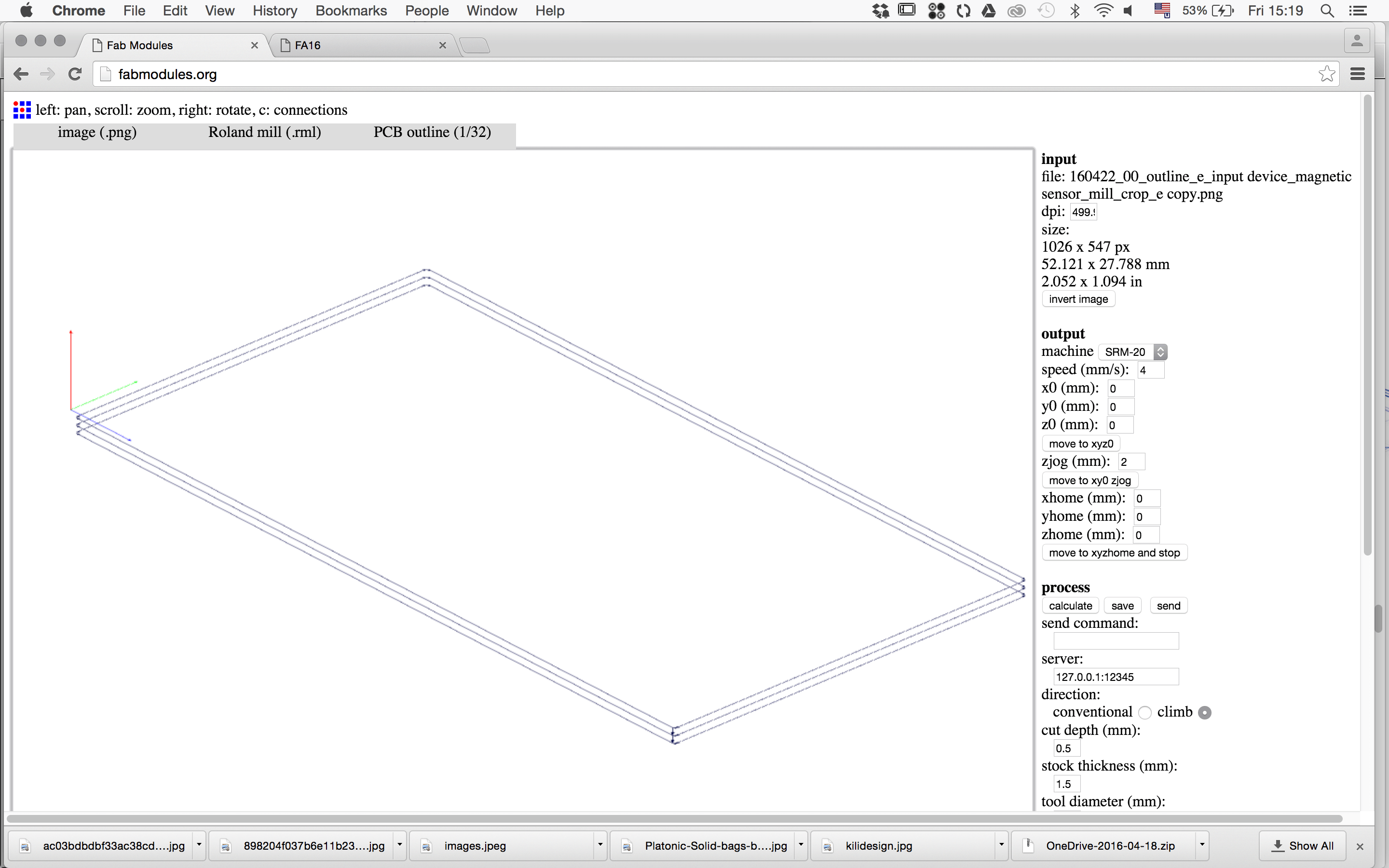 Designing the traces. I went bit crazy with graphicall appearence of the traces...just for a testing this SW...exported traces+outline...the same procedure as explained in electronix week.