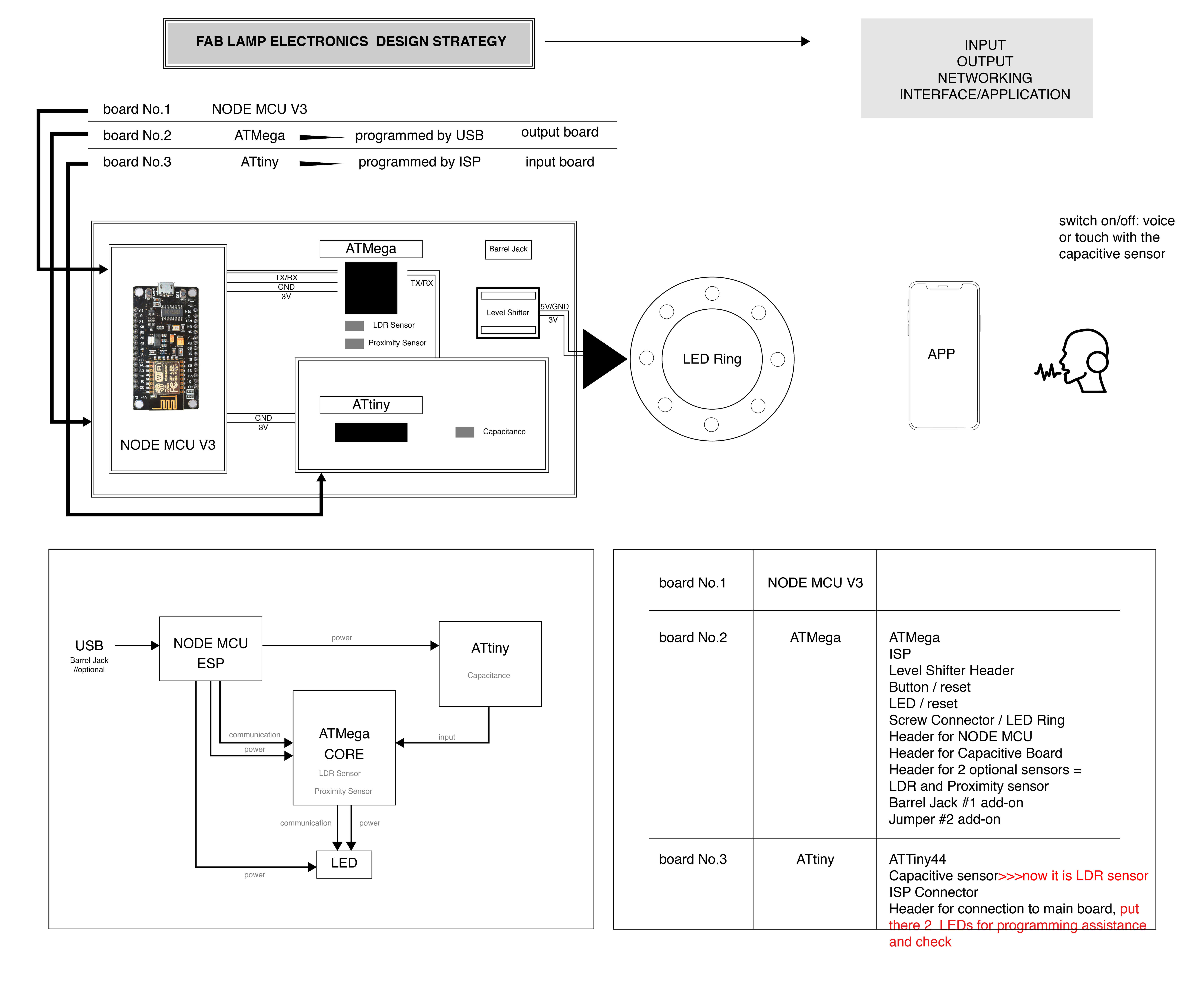 - own board and its components including sensors and ouput devices