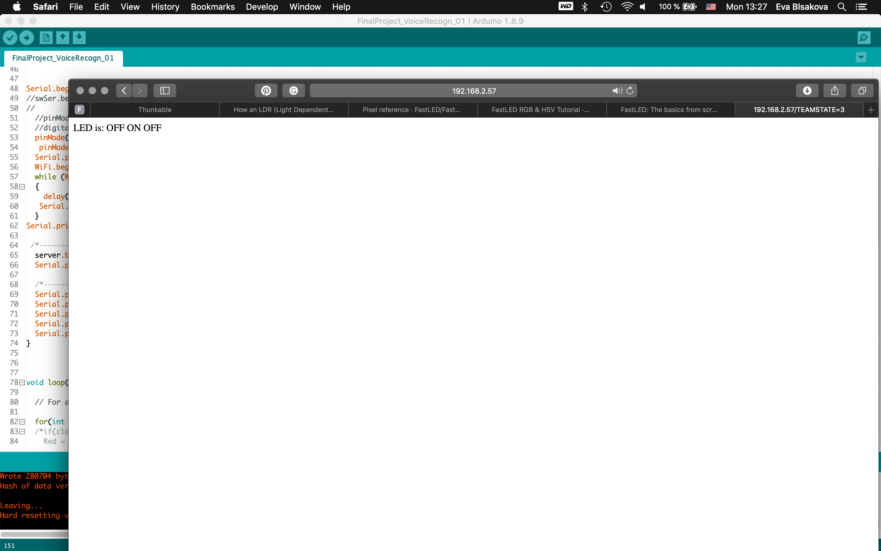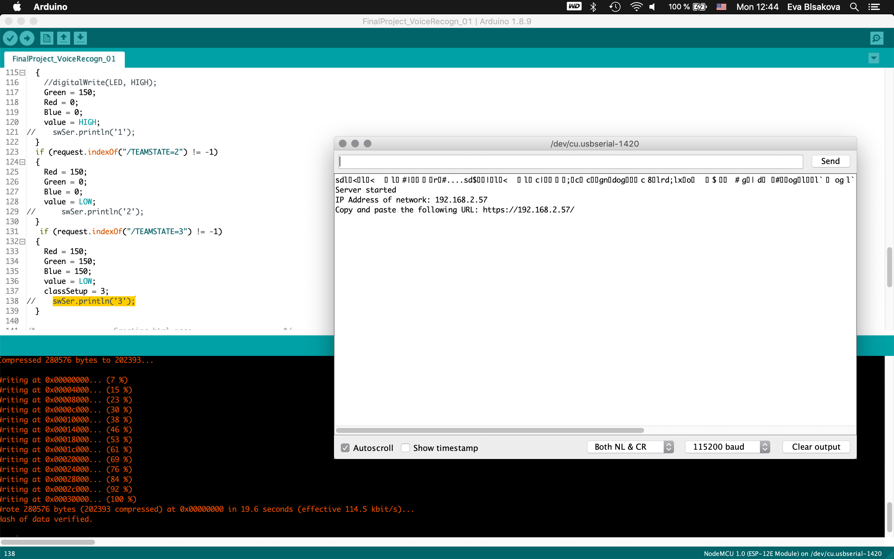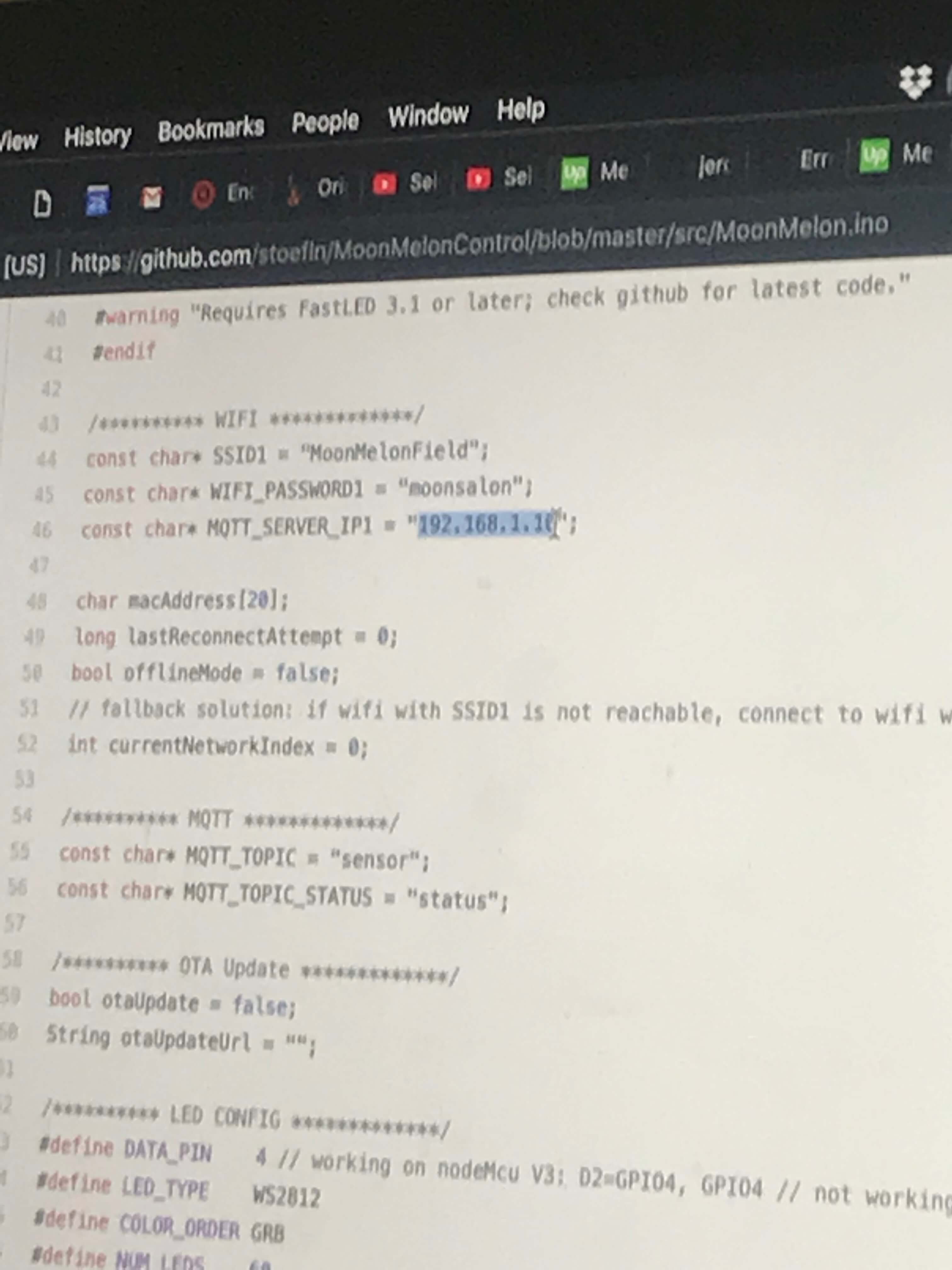 By adapting Josep’s code, we managed to get all boards talking and changing the master’s color when pressing the buttons.