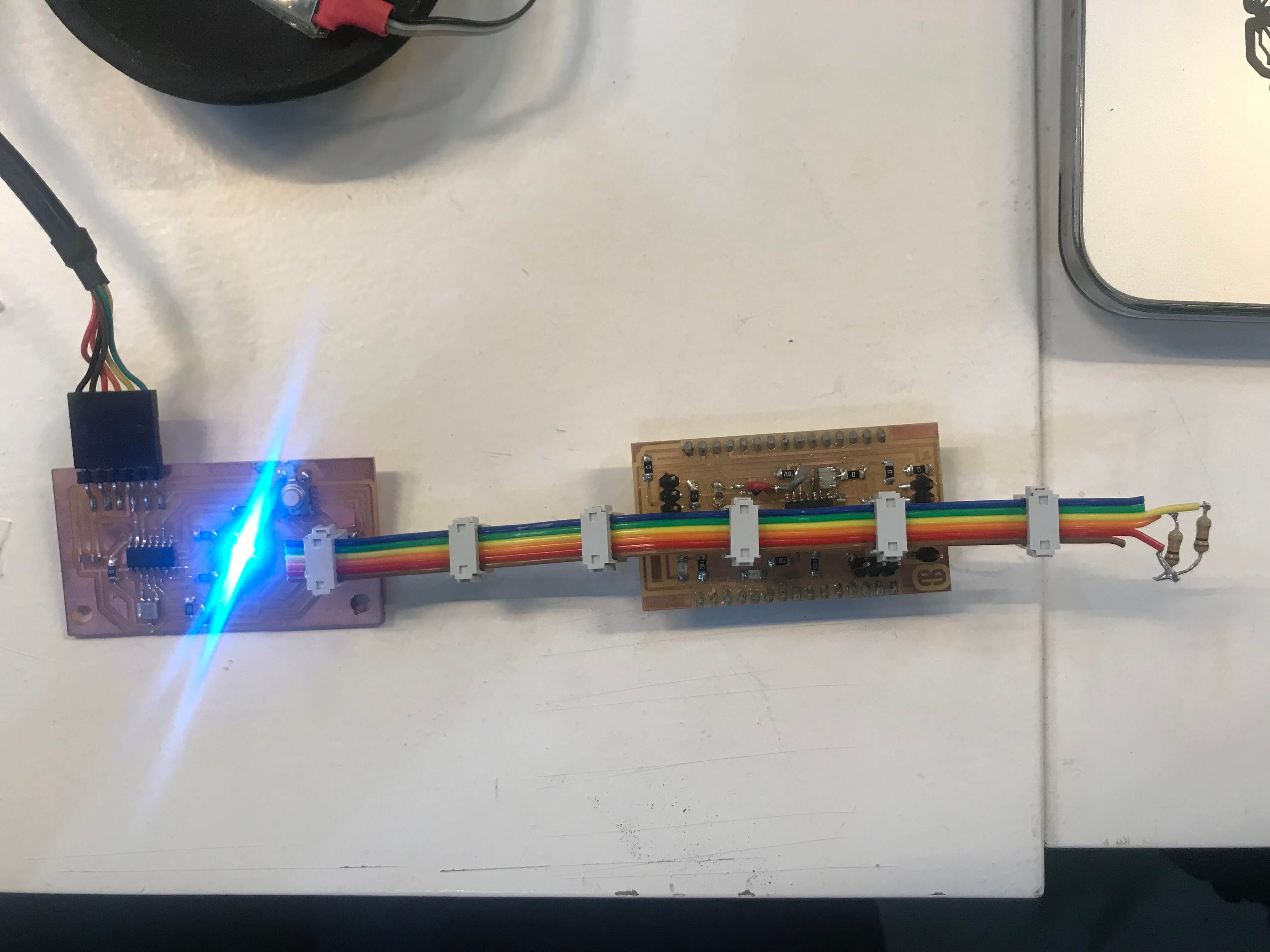 For communicating between projects, I’ve paired with Josep Marti and Diar Amin. We decided to use the ribbon cable already assembled to create an i2C hub and talk with our hello boards.