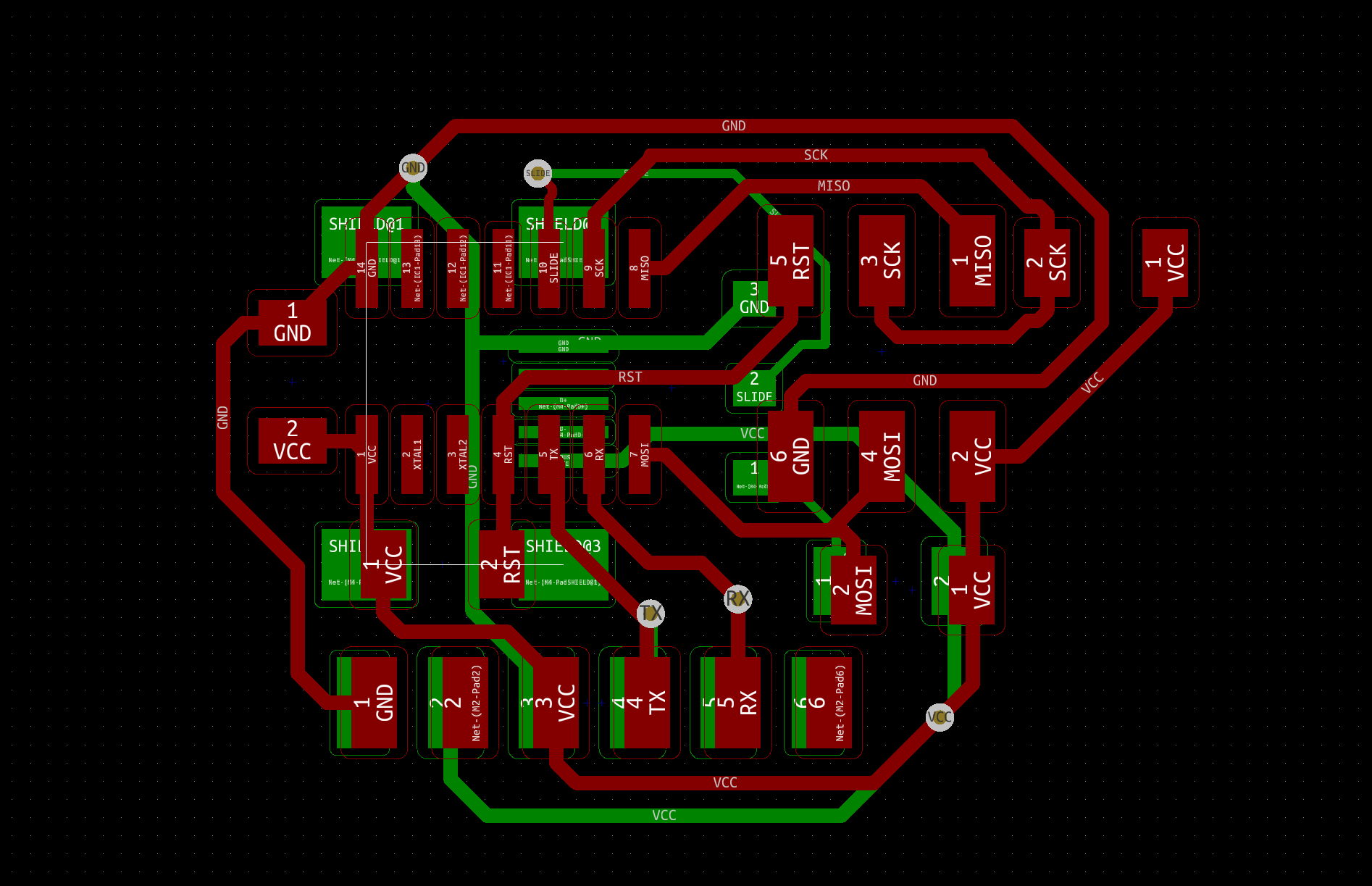 All the main concepts were explained in the Networking Week because I decided to make there the boards for my final project. After some weeks, while doing the Project Development I decided to design a new Master board, with the pull-up resistors inside and a pin connection for the bluetooh module. This are the boards I did:
