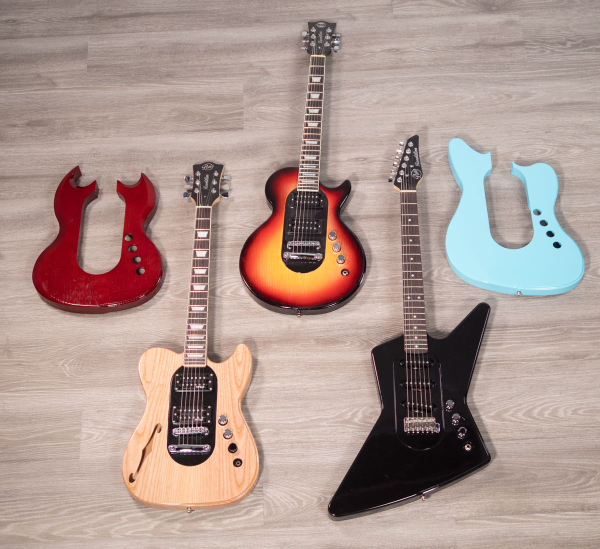 Another great example is the model designed by the catalans firm Pons Guitars. It is a modular electric guitar, where the body can be desatached from the neck to change the stetic of the guitar, allowing the player to have multiple guitars in a single instrument.