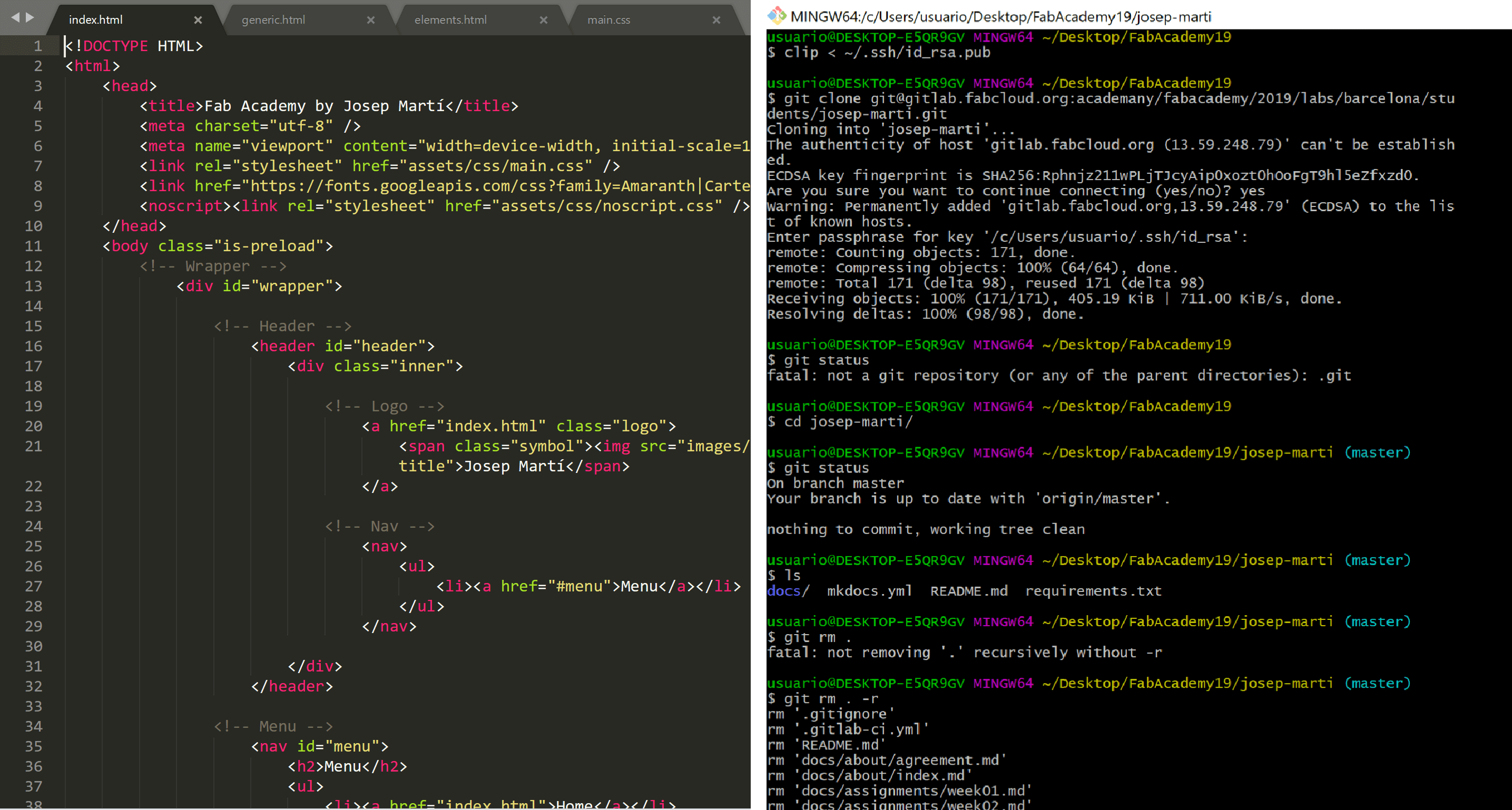 It was a really interesting week, my first days in the Fab Lab, with a lot of information to process but tones of cool things learned. The tools learned here are very important nowadays in a globalized world. Repositories like GitLab are a very useful tool to manage your projects, and I am sure I will use it in the future. Also, learning to develop web pages is really fulfilling, challenging and fun to learn as you go, so I recommend everyone to face those problems and get a nice page done.