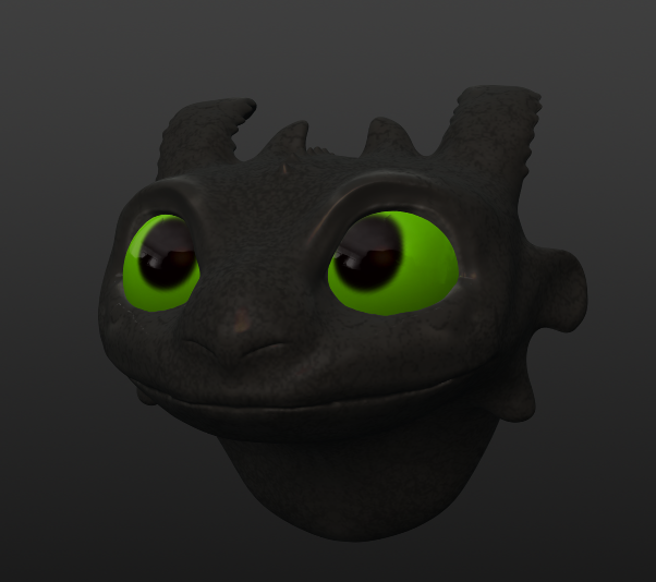 I also wanted to try some sculpting software and looking for an Open Source I find Sculptris. It is a software created by Pixelogic, the same creators as Z-Brush and it allows you to sculpt a clay sphere into whatever you want. I decided to sculpt a 3D head of Toothless, the main character from the film How to train your dragon because it was a cartoon and it seems easy to replicate. It was really fun, I didn't ad time to learn all the features but using the Grab tool you can model almost anything! Also, I used to new spheres for the eyes and that helped me later to paint it.