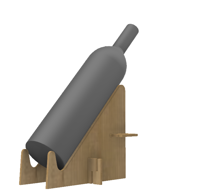 After designing my logo the next step was to design something in 3D. I come from a winery family and my uncle asked me if I can make something for him to hold the bottles in a 45º position to show better the bottle in fairs and congresses. The first idea was to create 2 wood holders that can be cut by laser and a nerve that fix the distance between them to use it for different bottle sizes. Once the initial ideas were defined, I decided to go with Fusion 360 to create the geometry.