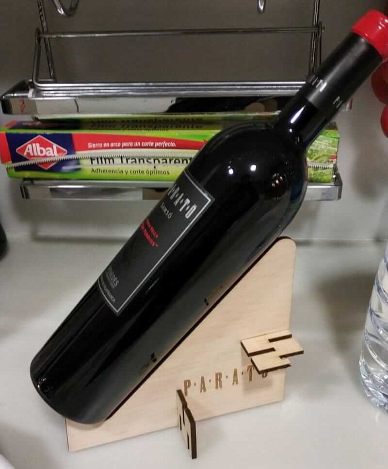 After the press kit, I decided to try to cut the bottle holder I designed last week. The only thing I had to adjust were the tolerances for the kerf of the machine and the result was amazing! It was make of two pieces of wood and 2 pieces to join them. The join piceces had different gaps to fit in different positions, so it can be considered as a press kit too.