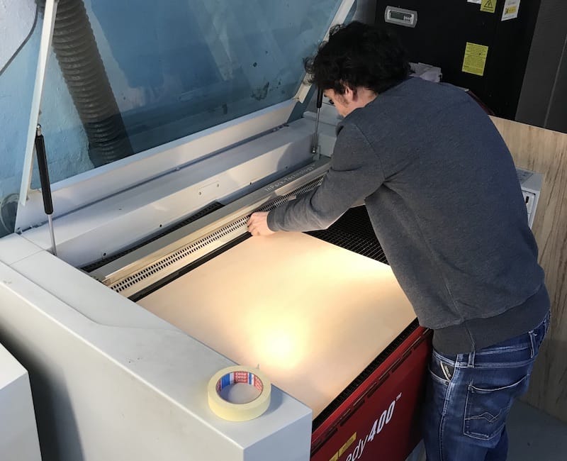Out of the 3 machines Fab Lab Barcelona have, we choose to use the Trotec Speedy400. It is a 1000x610mm 100W machine.