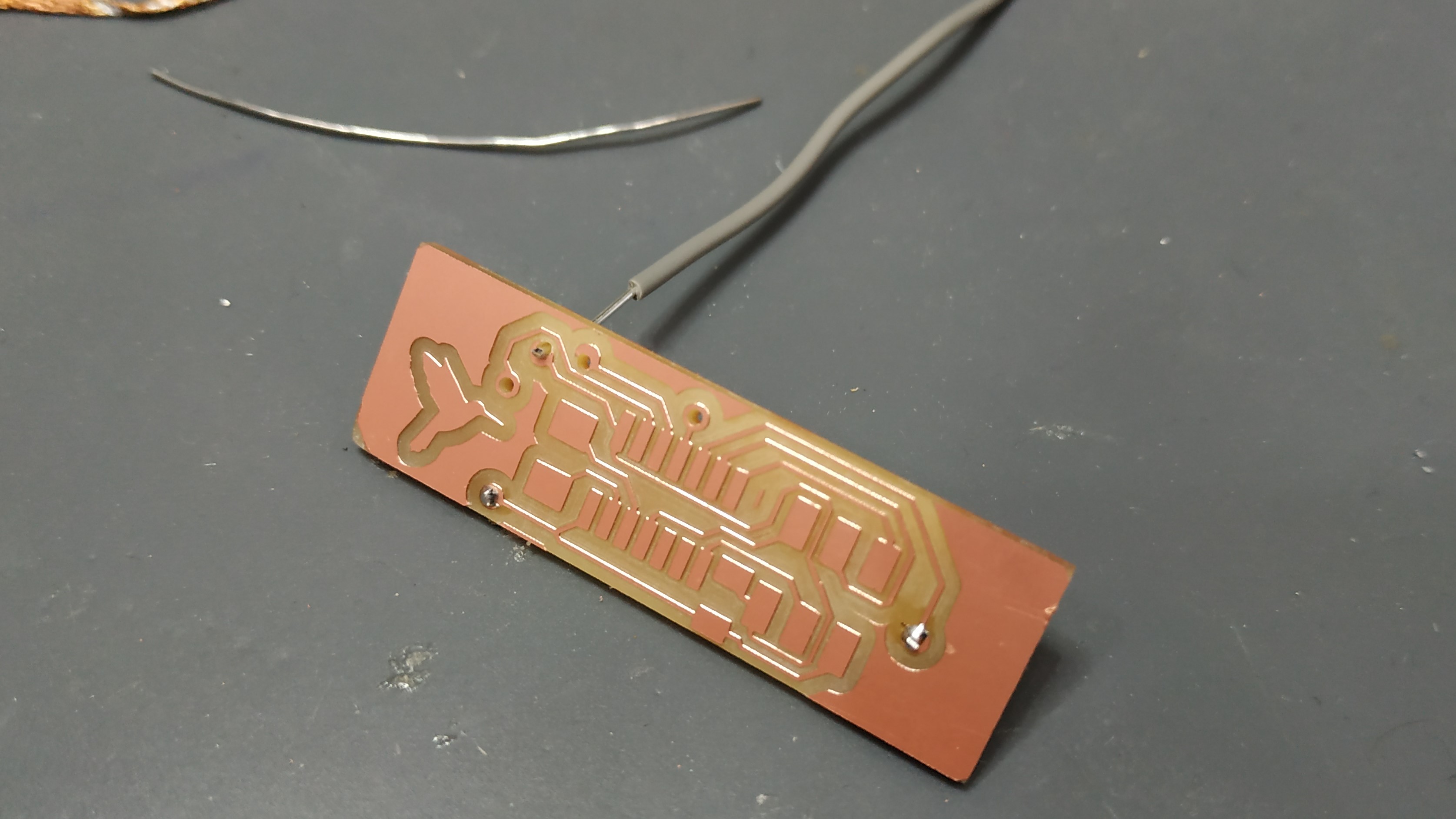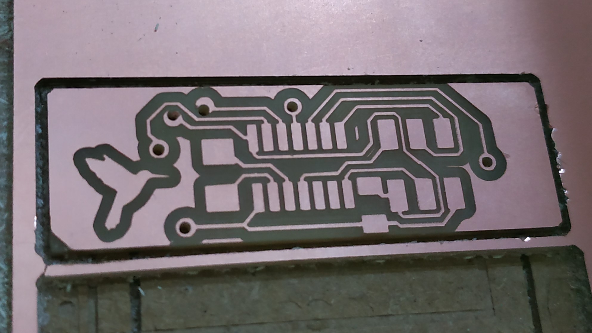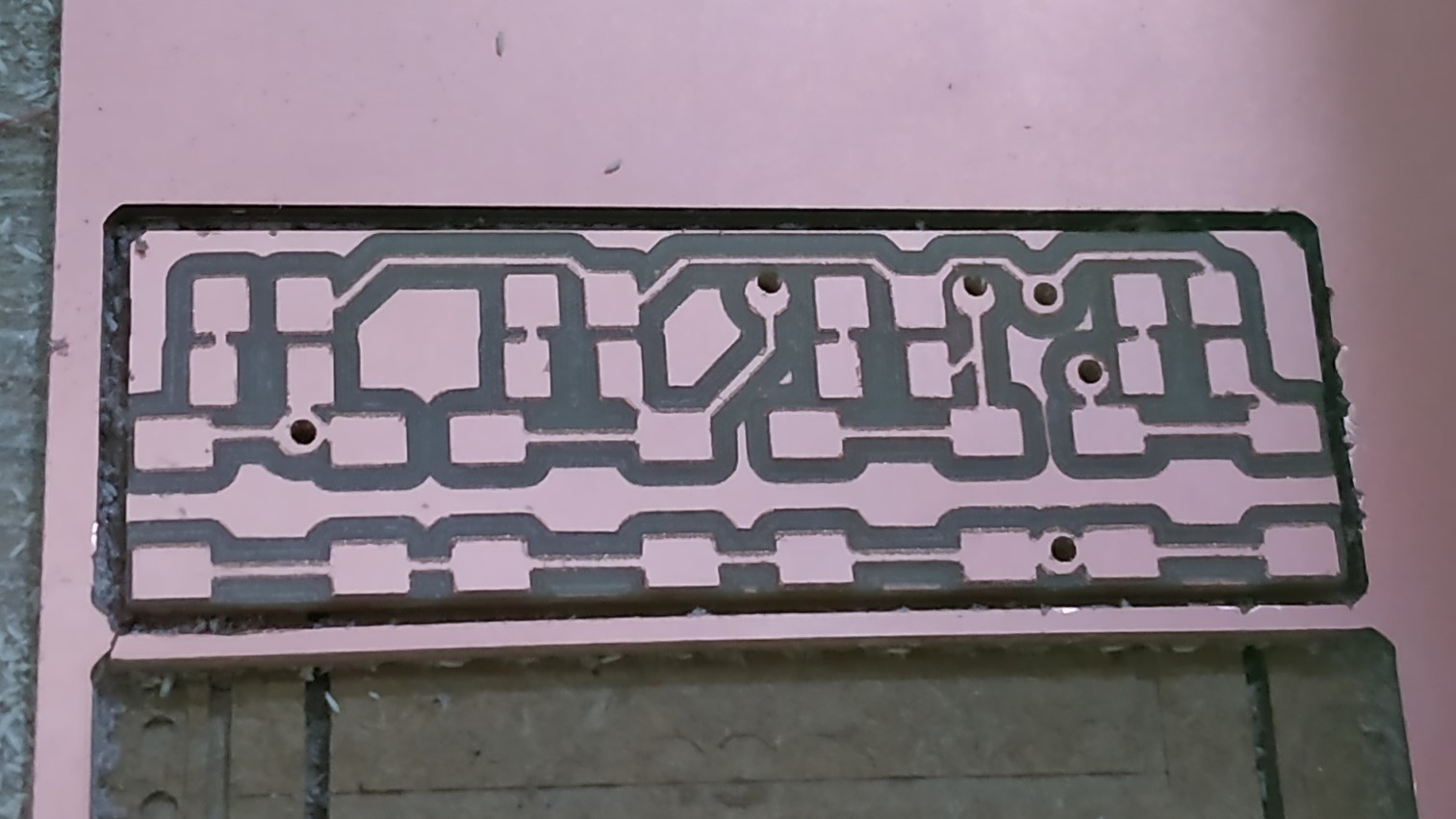 Milling the board was the most complicated part of the proces because I found some errors. The first one, as you can see in the first image I get a problem with the connections in Kicad as there were really close and the milling machine didn't go througth them, so I try to separate them with a cutter, but it was not working.