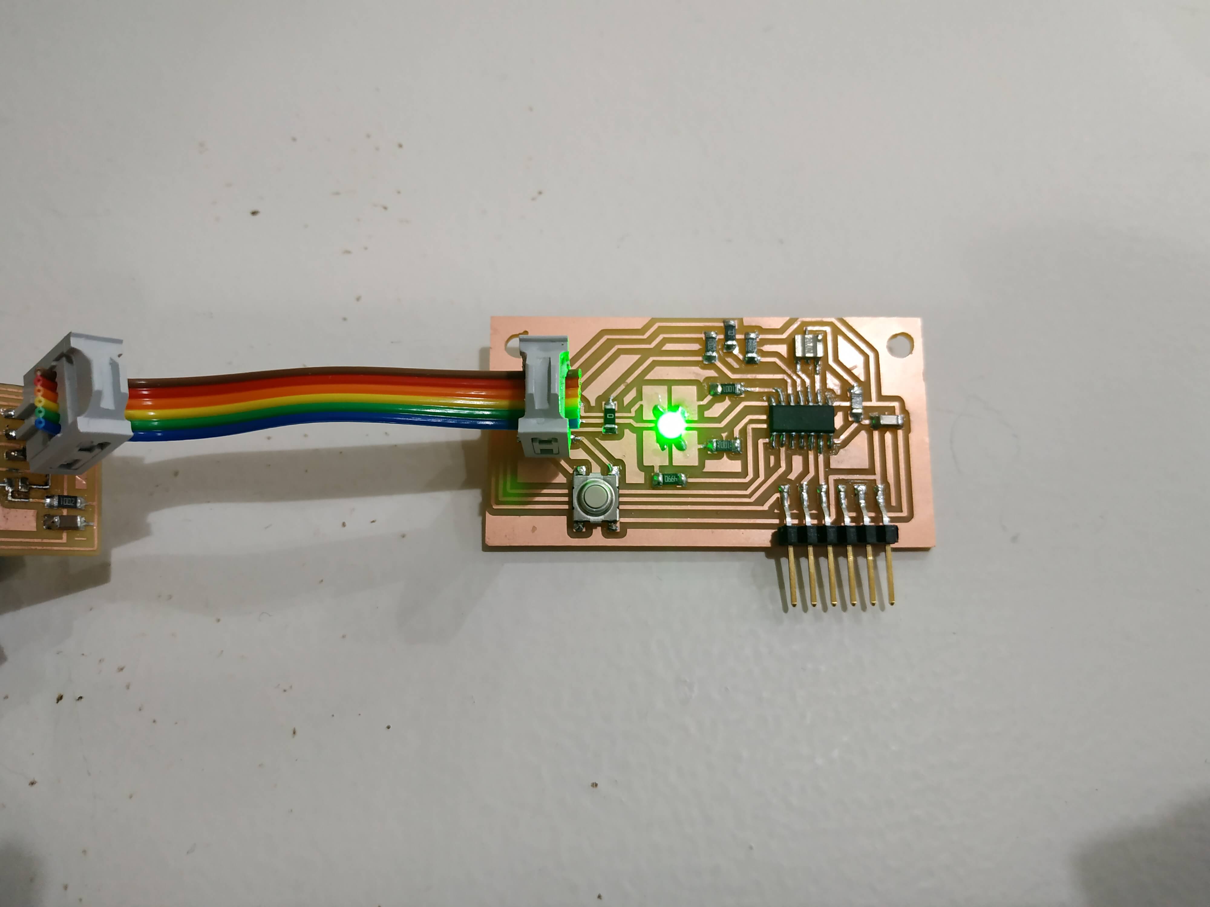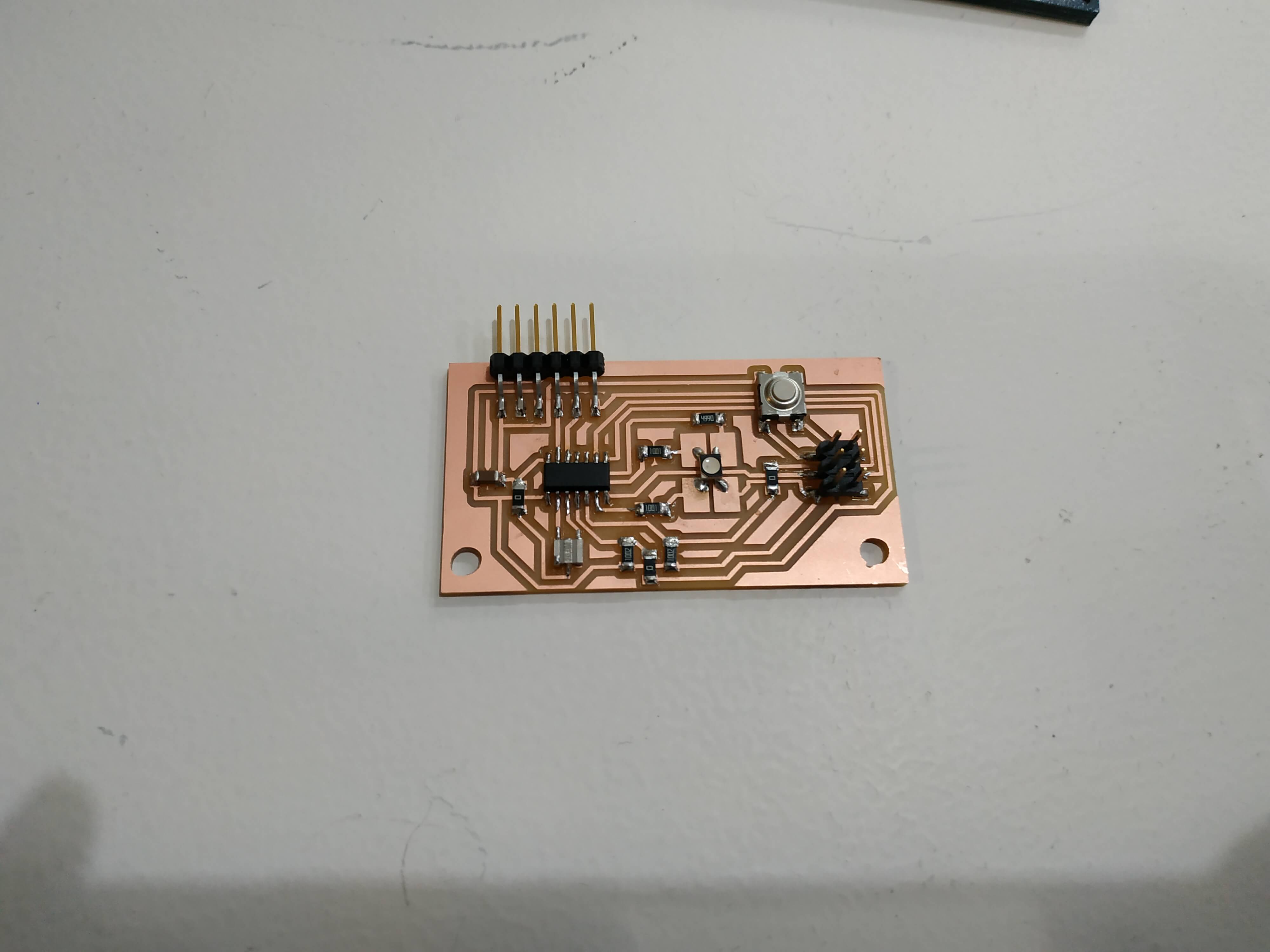 To detect the problem I had with the button, I did some troubleshooting with the mltimeter to make sure all the connections where right. Fatsly I detect that all the pins of the button where connected, so I decided to check the traces. There was no errors, so I tought it should be a problem with the soldering. I usold the button, but there was anything strange, so I saw that the problem must be underneath the ATtiny, and it was there. It was a small copper bridge between two connections. I realized then that I didn't clean the board before soldering, if I have done that before I am sure it would not have happened. Life lesson, cleane the board and check connections before soldering.