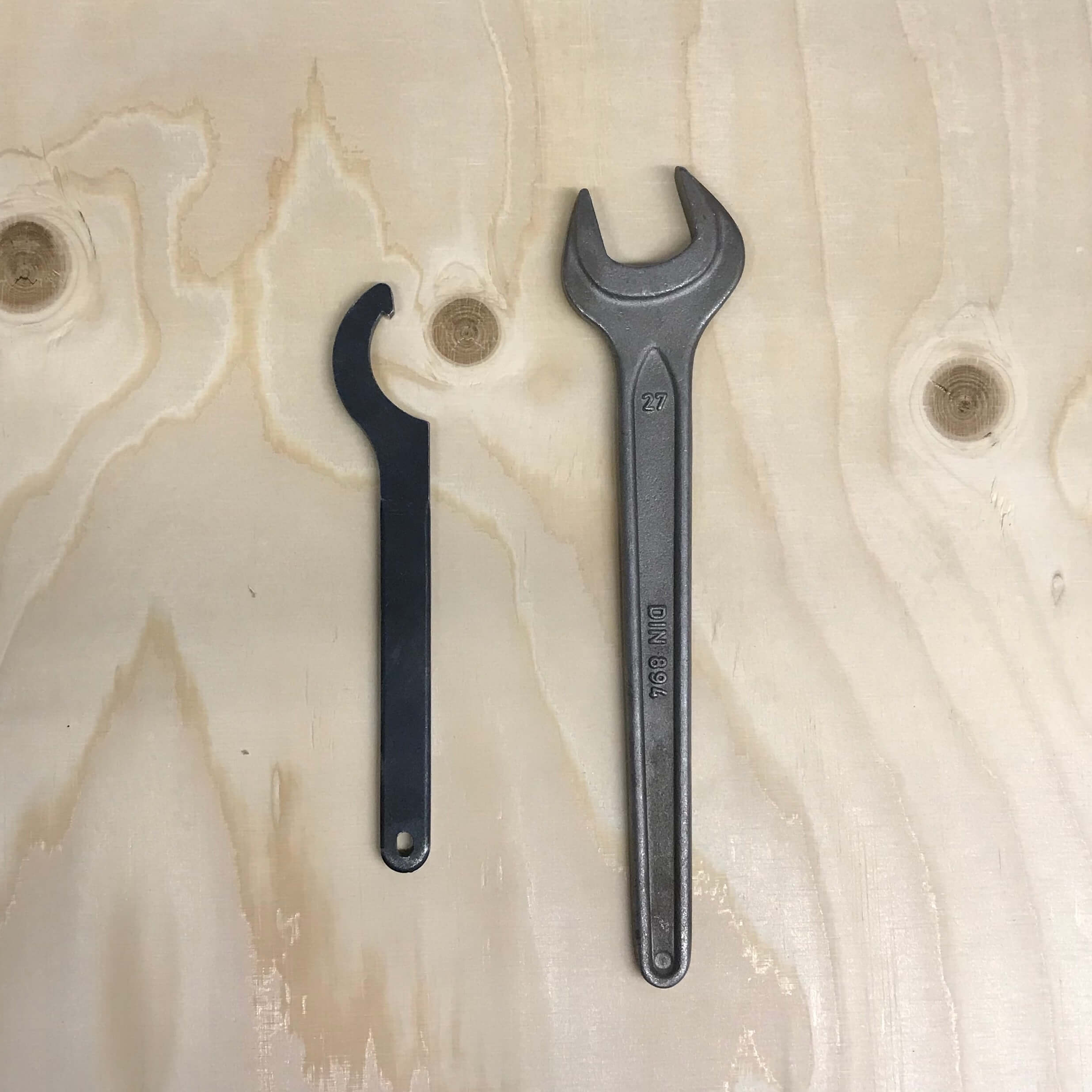 If necessary, you can remove the dust collector to make it easier to change the tool. Use the machine’s wrench and key to release the collet and holder.