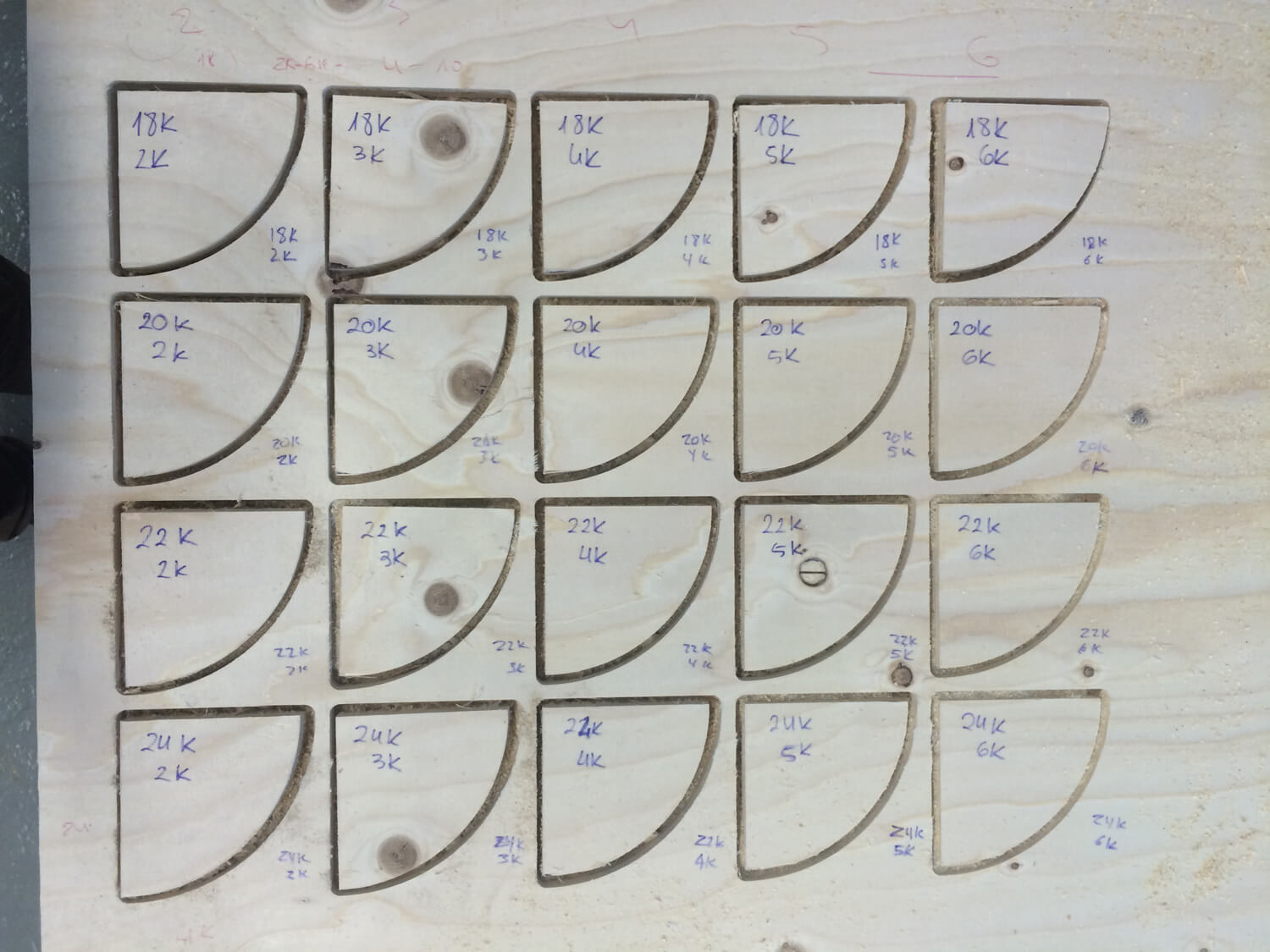 Even tough we had the numbers, we wanted to try the possible combinations, varying from 18k RPM with 2k feed rate, up to 24k RPM with 7000 feed rate.