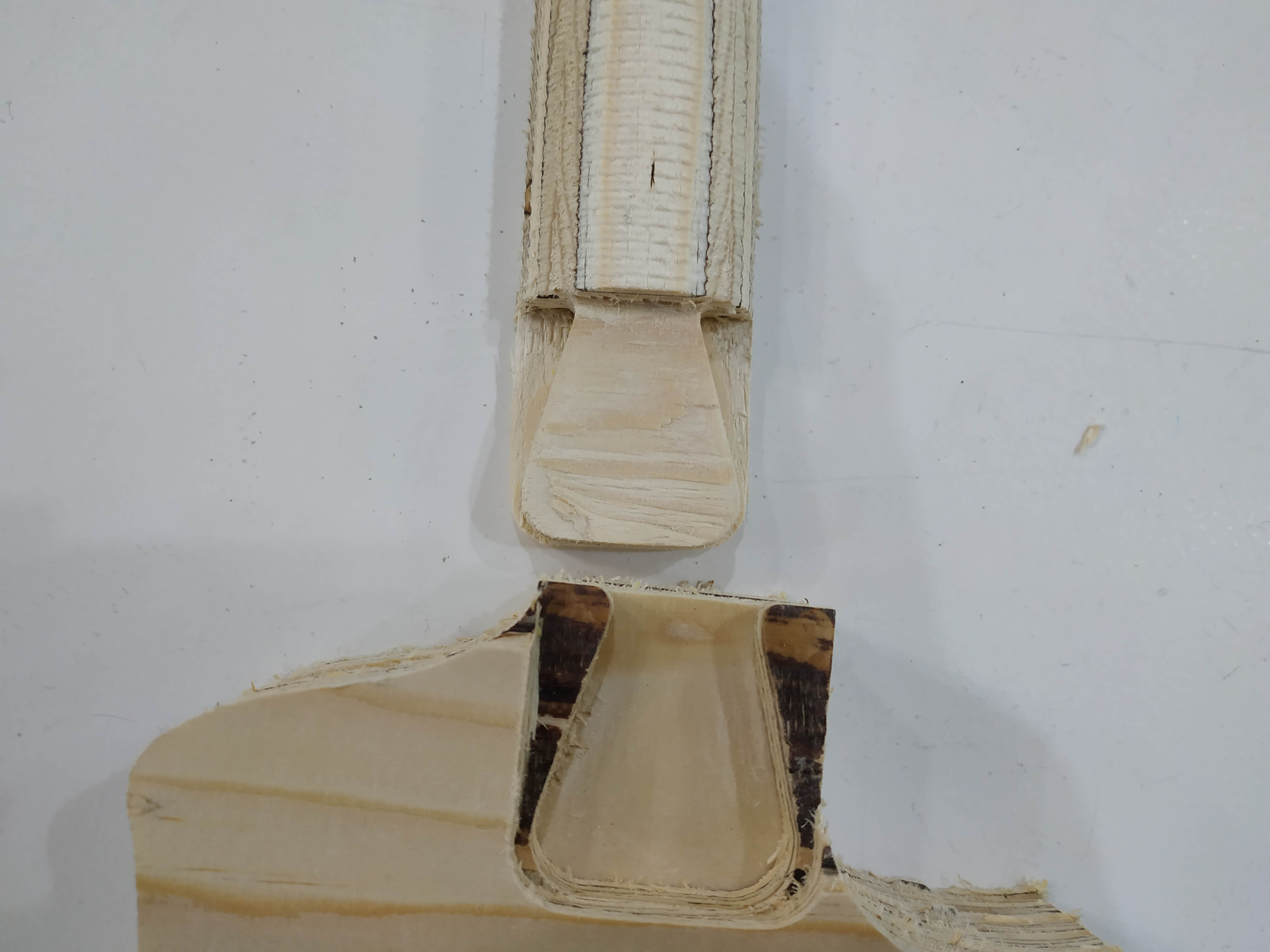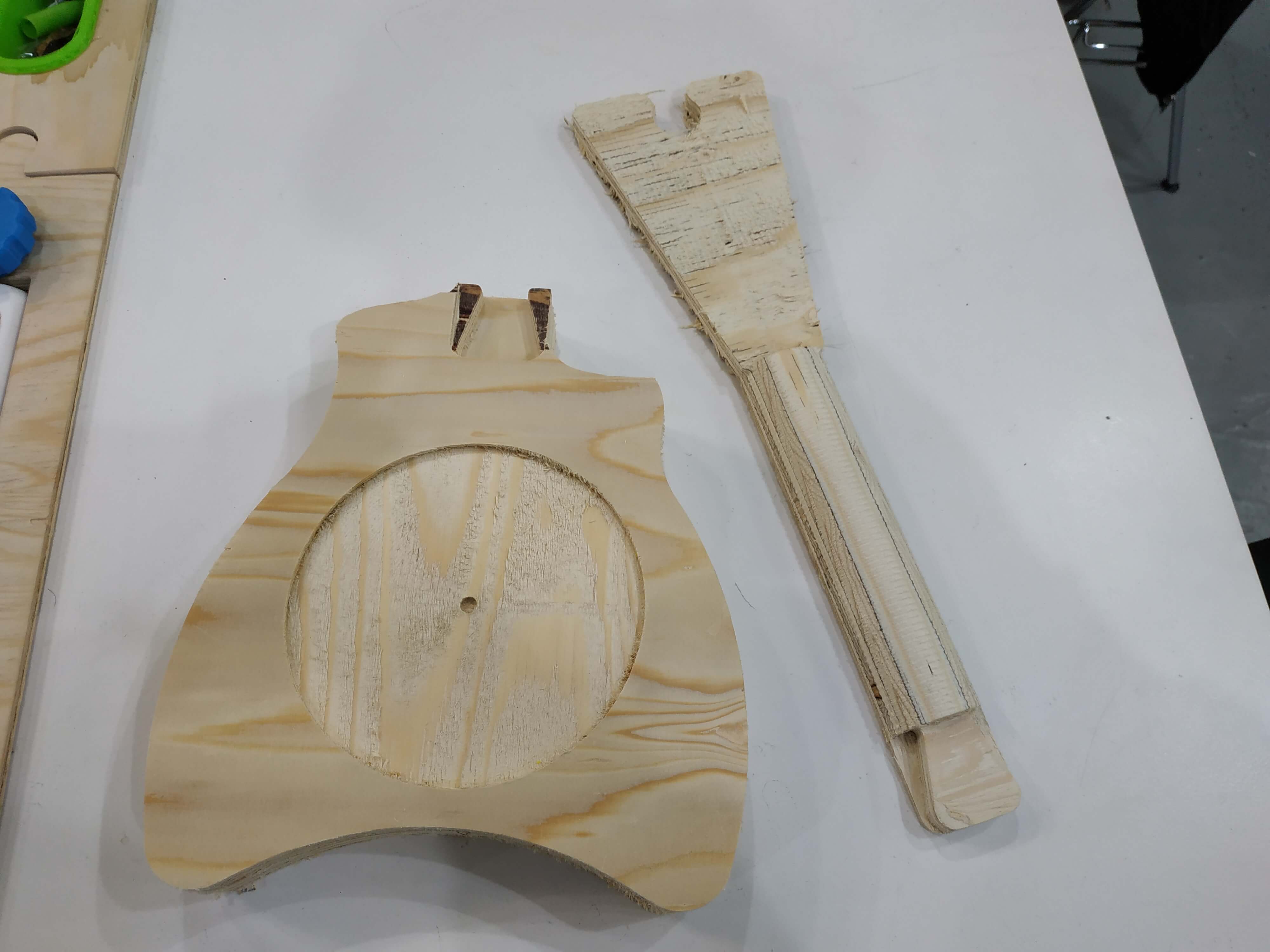With all the pieces milled, I decided to join them. I added some glue as the join has to take a lot of effort because of the string tension, but the join was really fit and I needed to hammer it inseide. Also I sanded the full instrument to get a nice finish.
