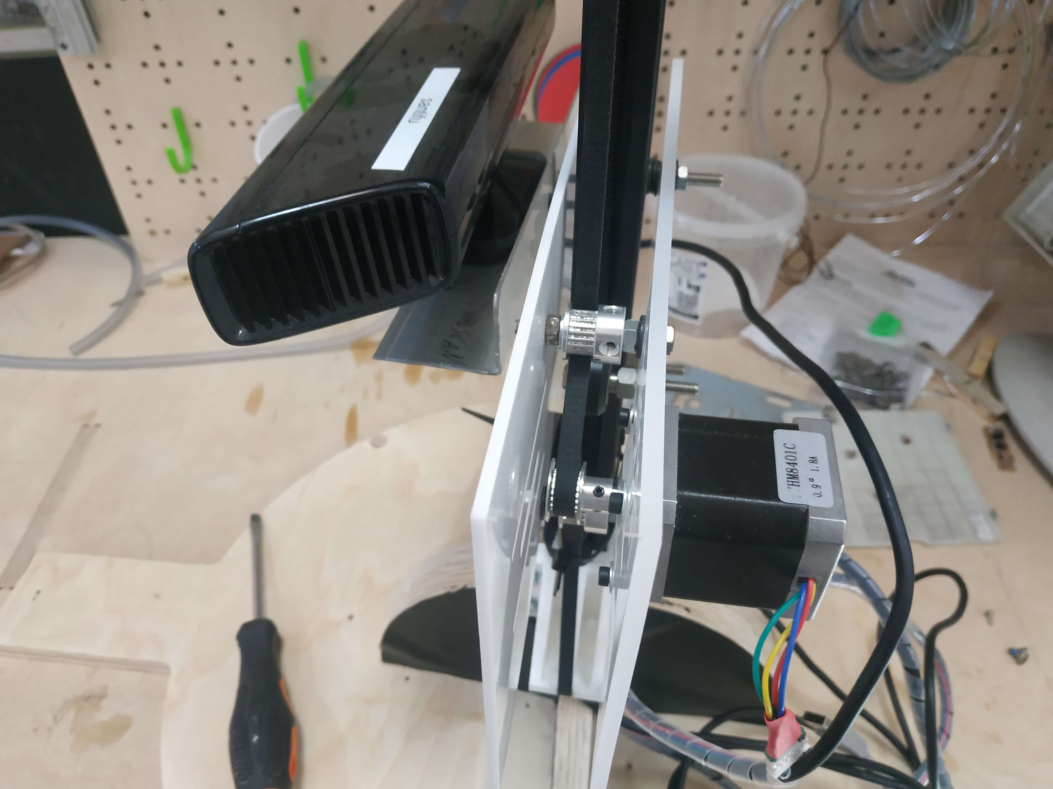 The design was made with Rhino and then laser cutted with some spare acrylic from the lab. Here are some pictures of the full mounted part with the kinect mounted.