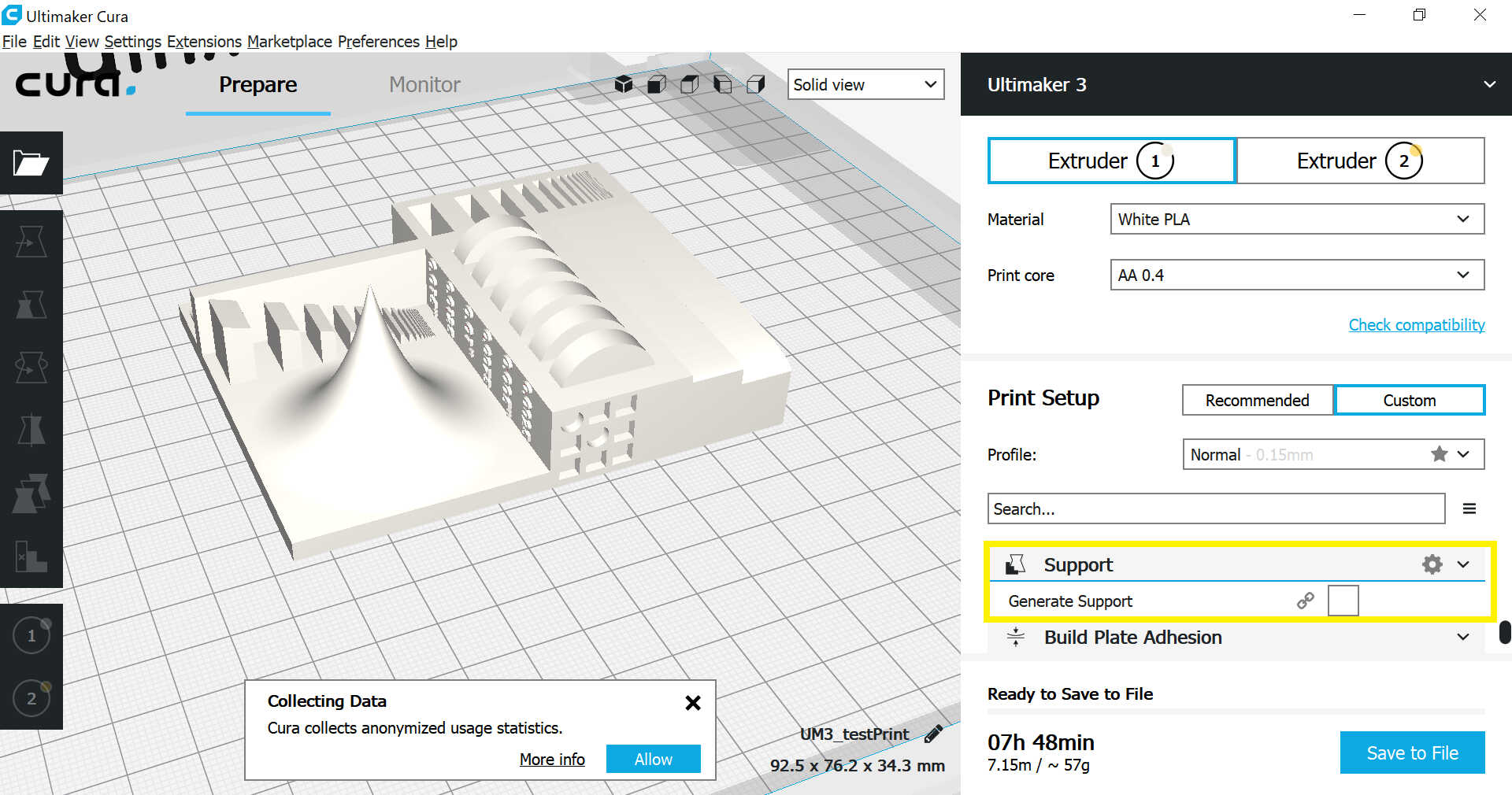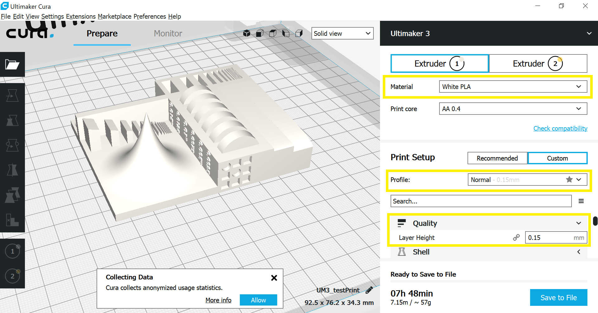 And you save your file on a USB and plug it into your Ultimaker machine so that it starts printing. The machine always pick the last file you saved