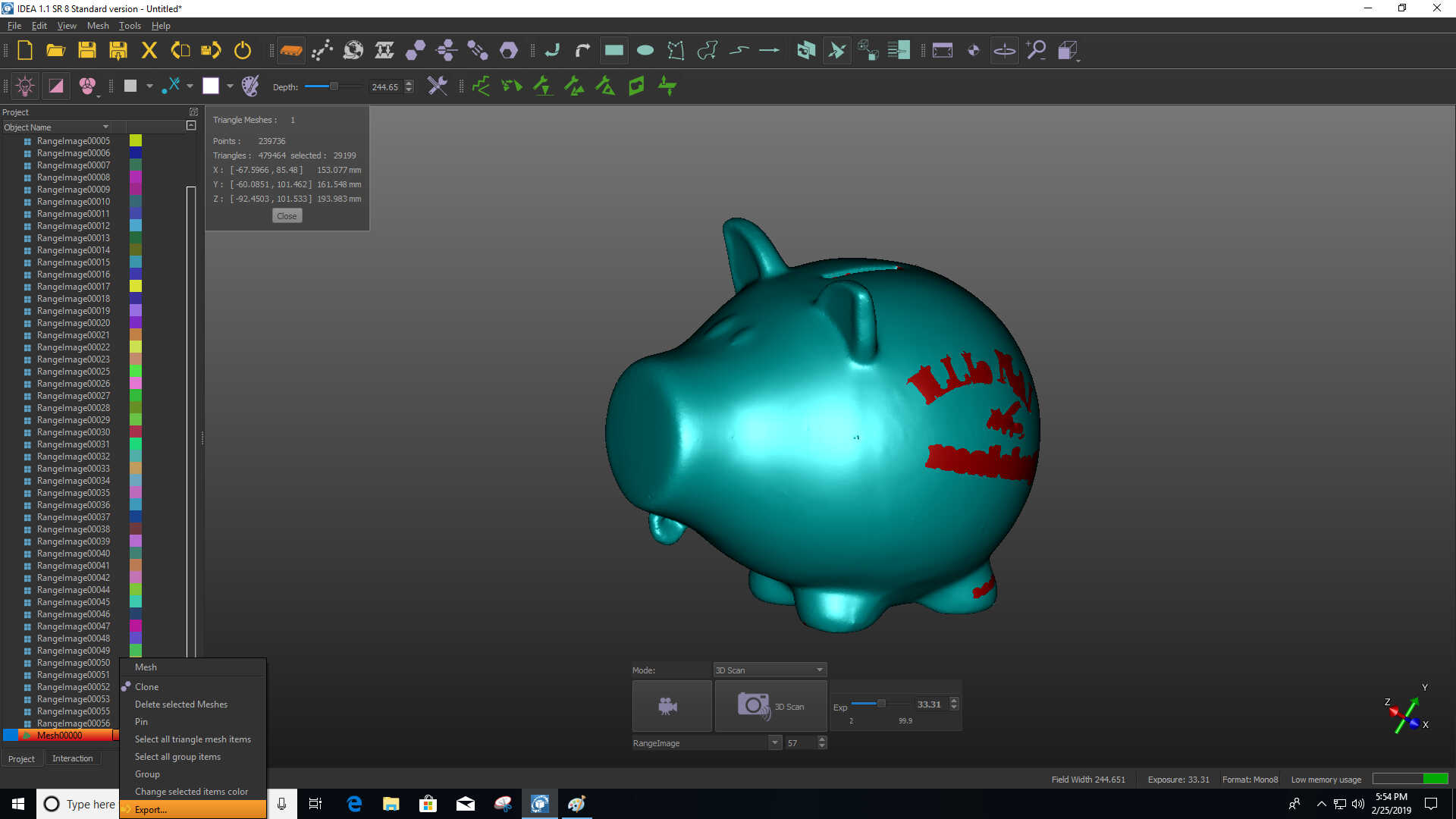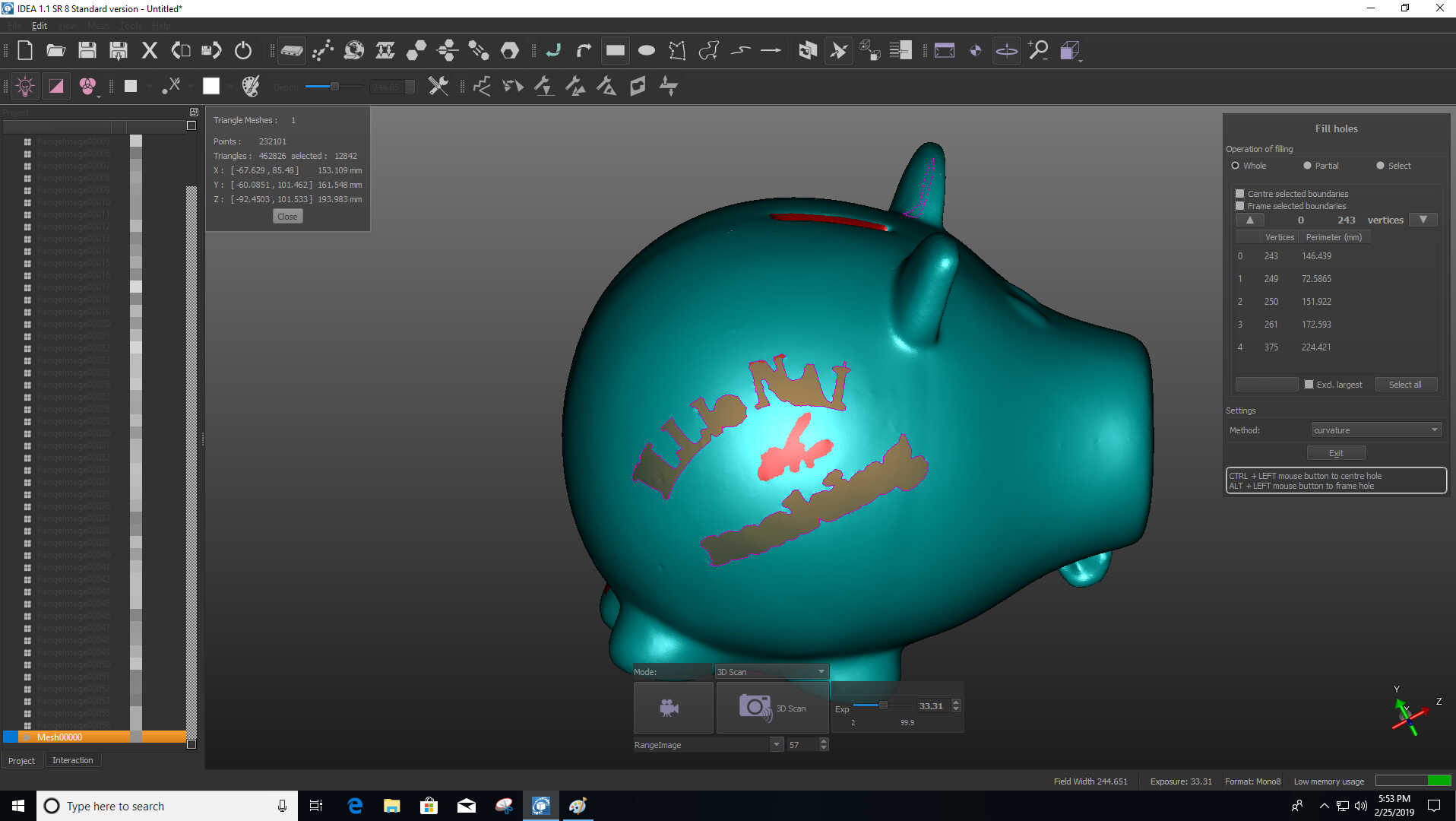 You need to 3d scan the object from different angles on IDEA software. Take as much scans as you can, while rotating the object every time around 20 degrees