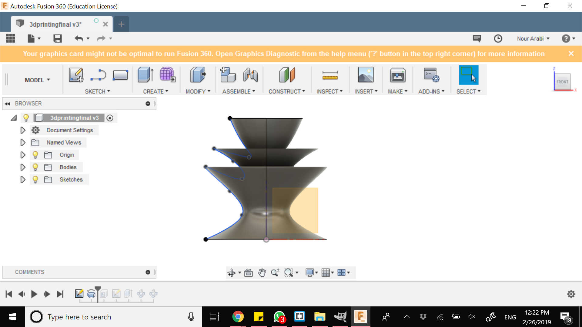 Then the SHELL command so that you make the vase hollow from the inside. You can pick the wall thickness you want