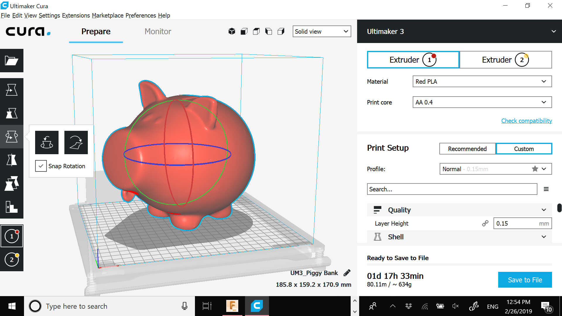 You may then check it in Cura to see if you want to 3d print. Mine takes 1d 17h 33min to be printed so the printing option was ignored
