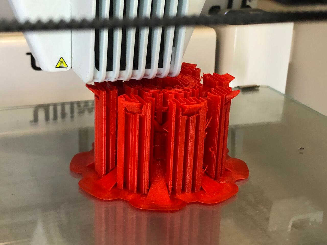 Then you need to save your file as STL and open it in Cura to generate the G code, save it and print it. I have chosen red PLA for my vase, and it took 12h 20 min to be printed