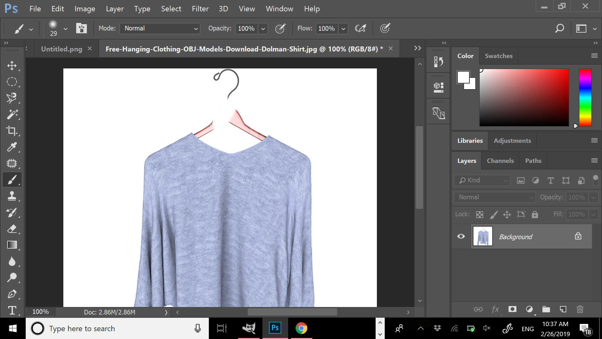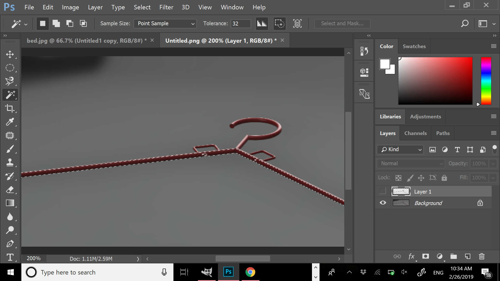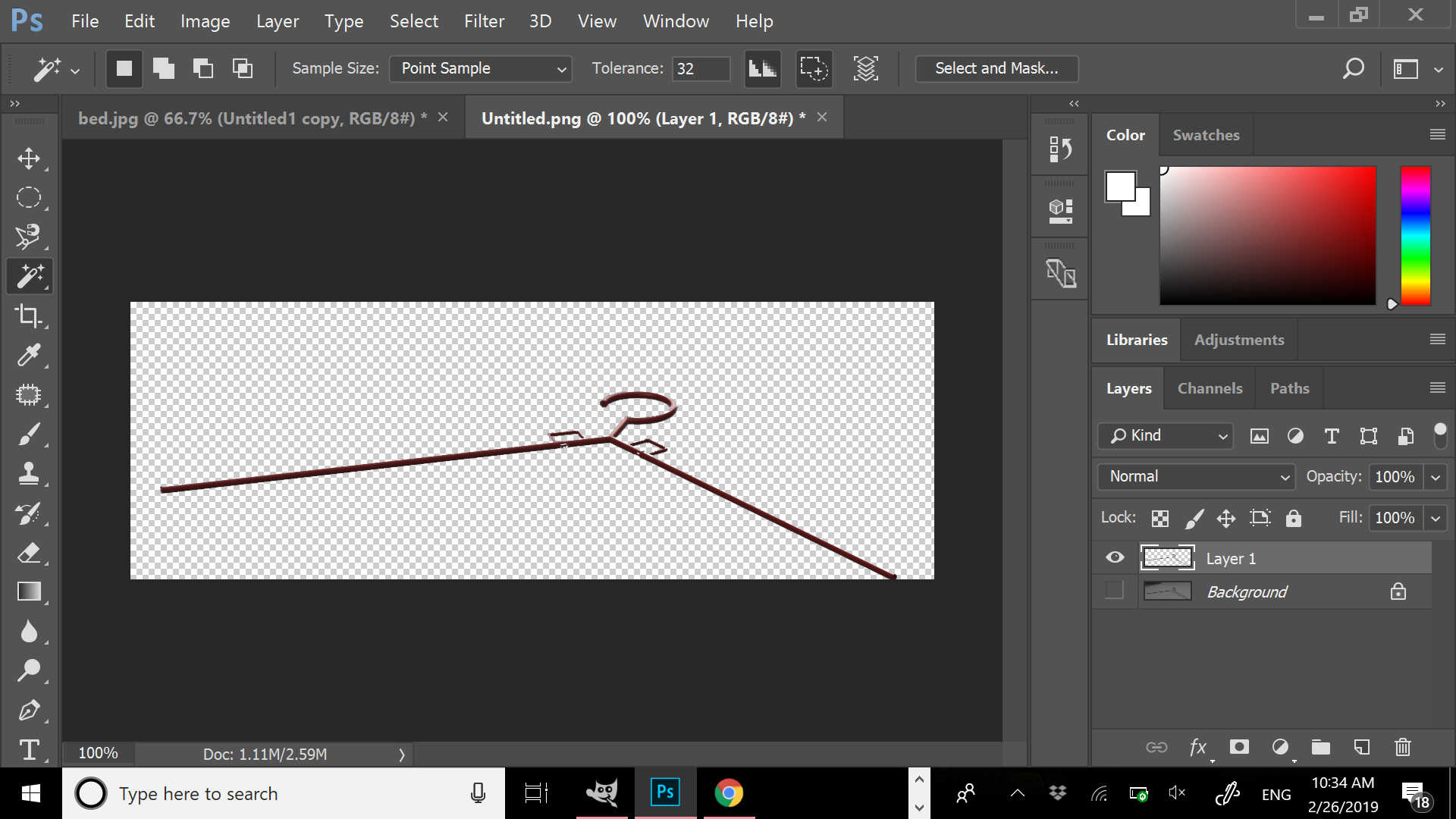 Then removed the grey background from the hanger's photo on Photoshop by creating a new layer and then turning it off