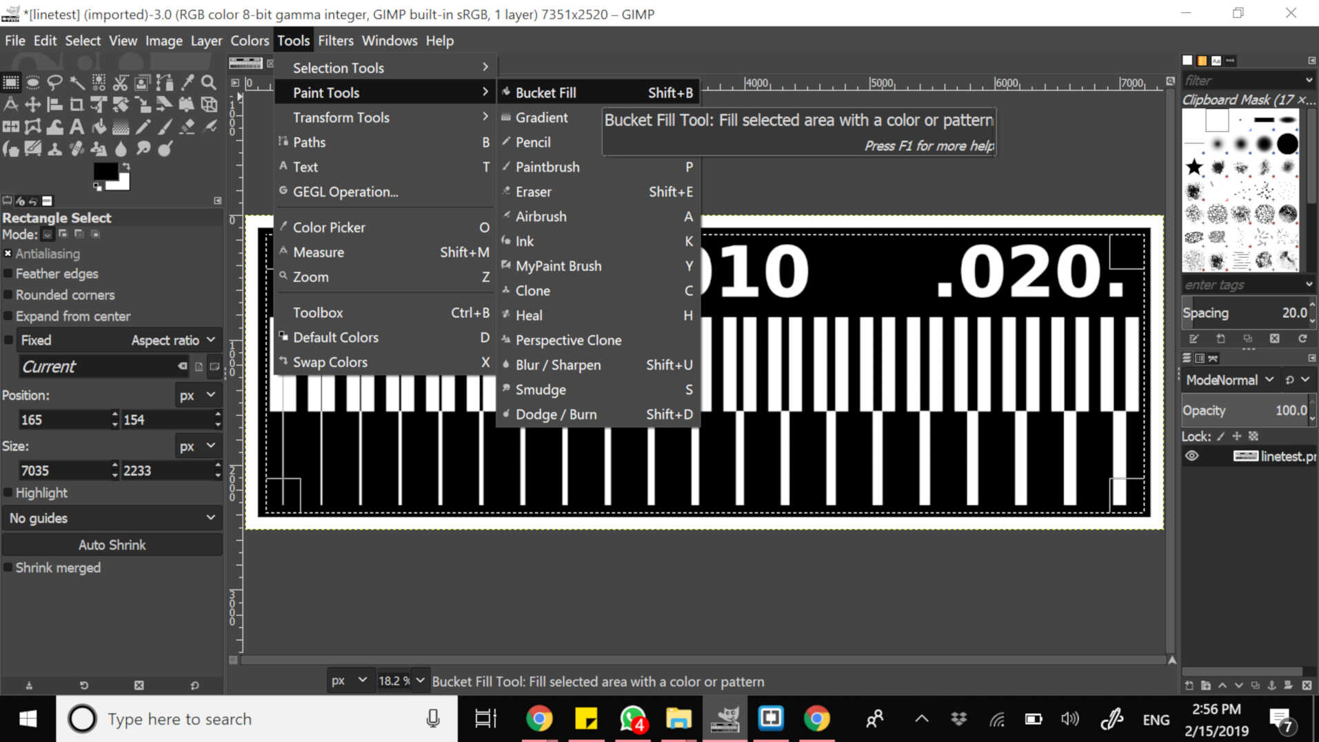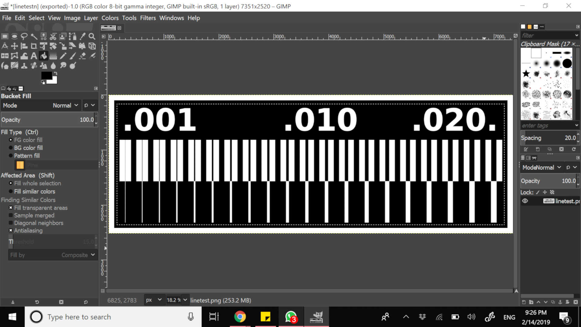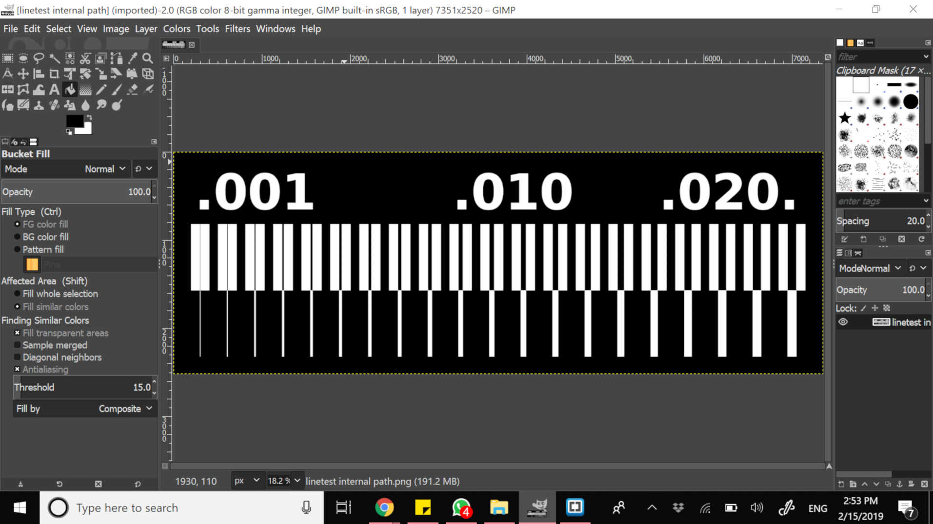 You need to know that the drilling bit cuts or engraves around the white line. All what is in black stays as it is. This means that we need to have two images to be printed; one for the internal path (which is what needs to be engraved inside our frame) and another one for the external path (which is the outer frame that needs to be cut). And for that we need to use GIMP (which you may download from here ) in order to generate the two images