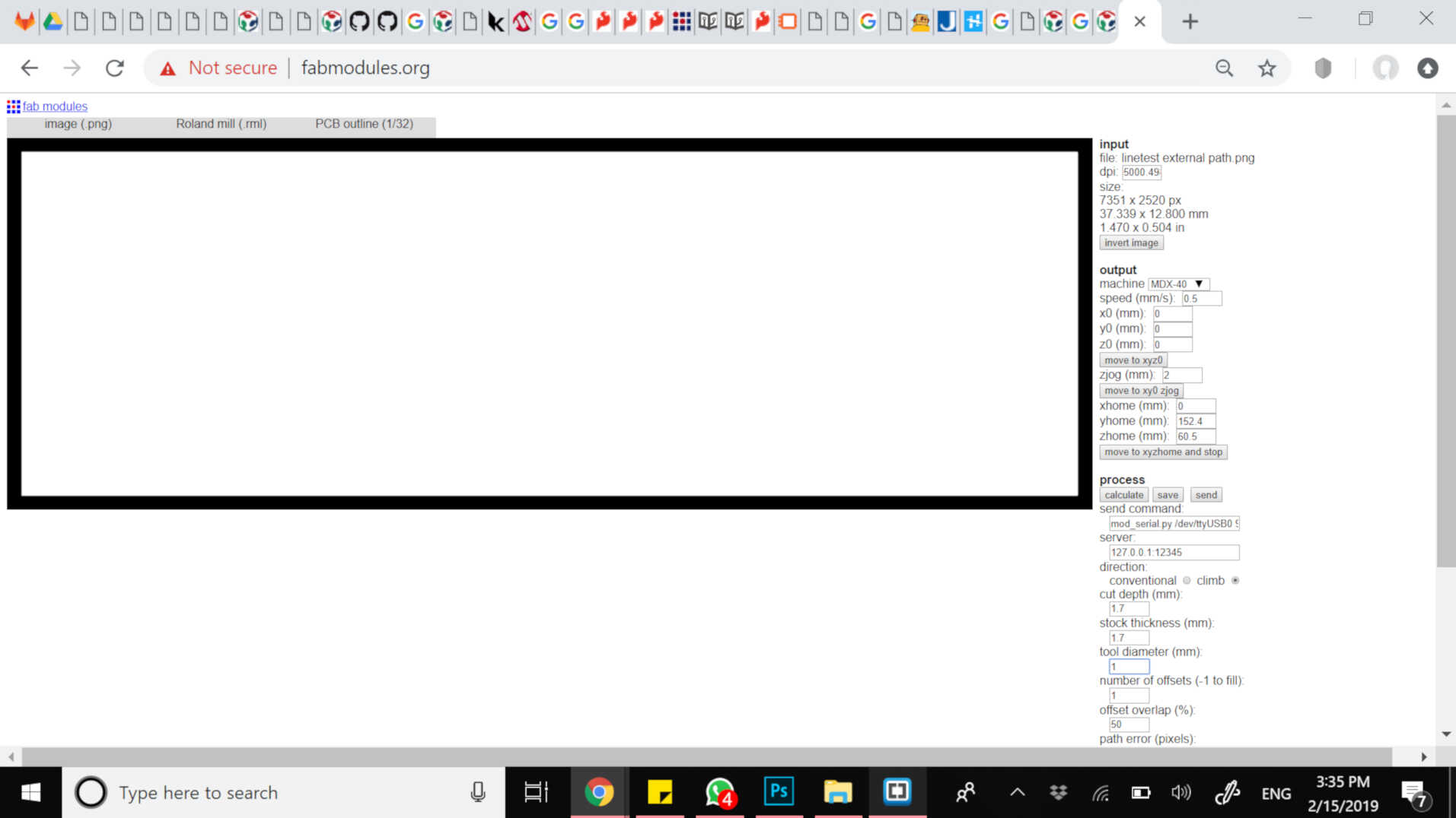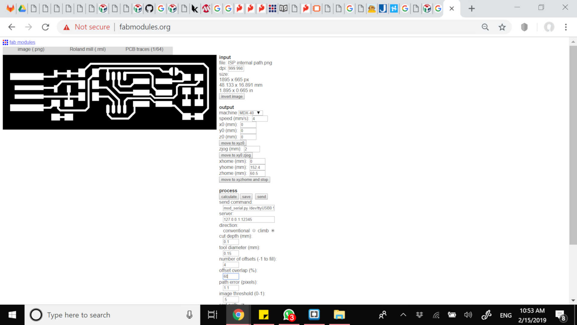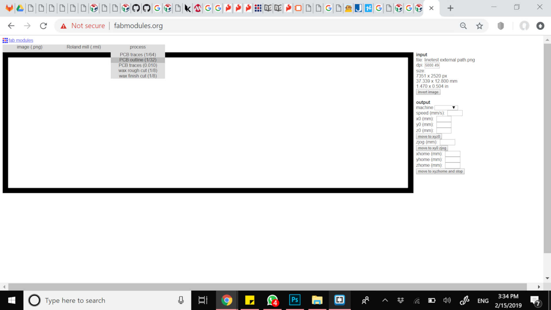 Now you need to generate something called the G code. The drilling machine cannot understand those photos. It needs a G code in order to work. This code can be generated from Fab modules