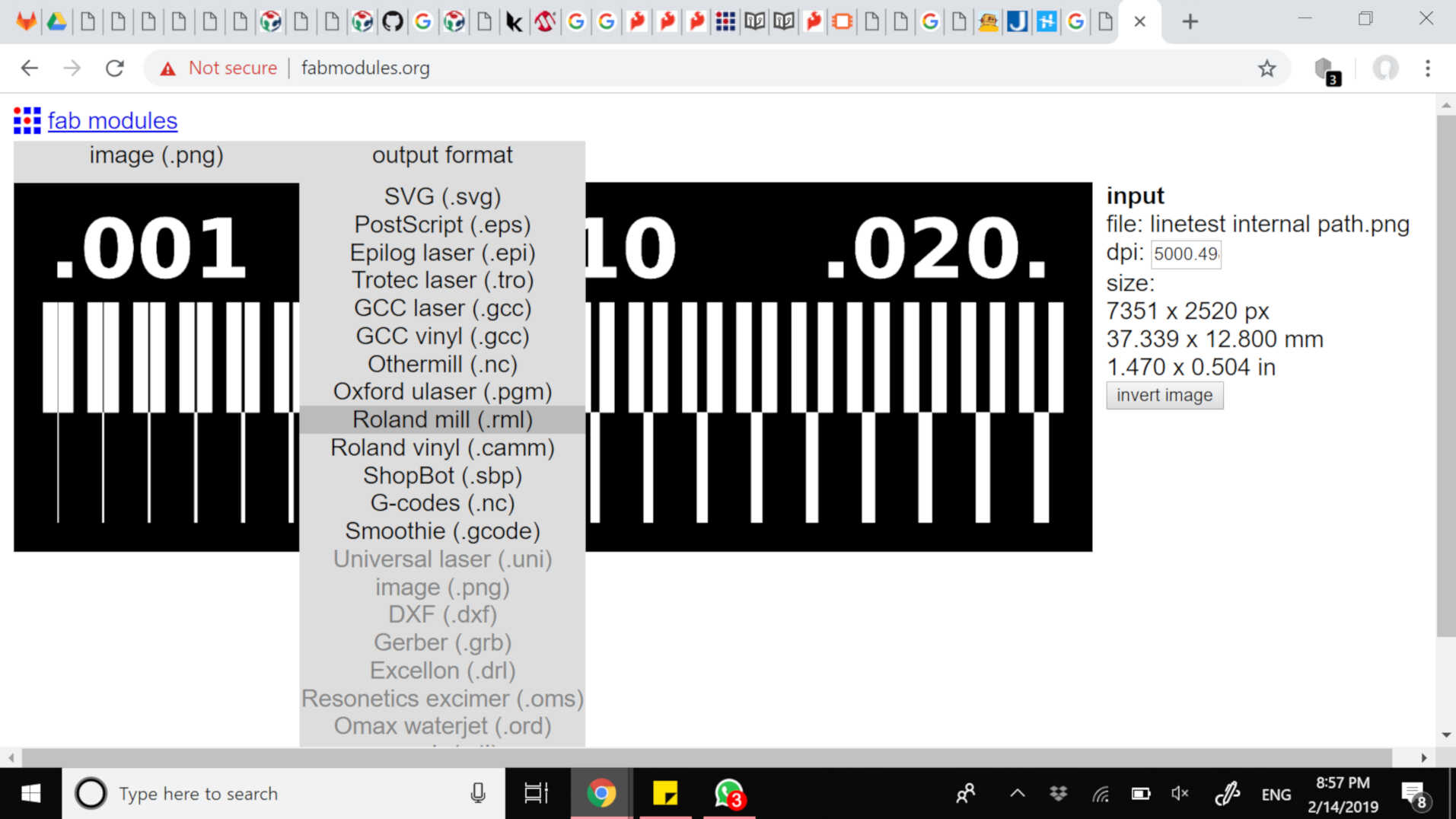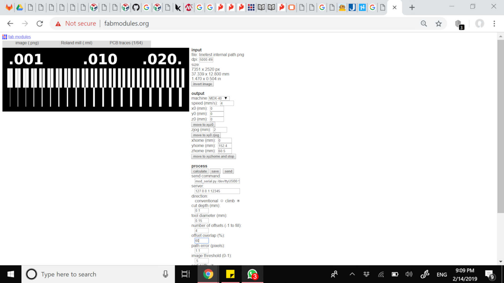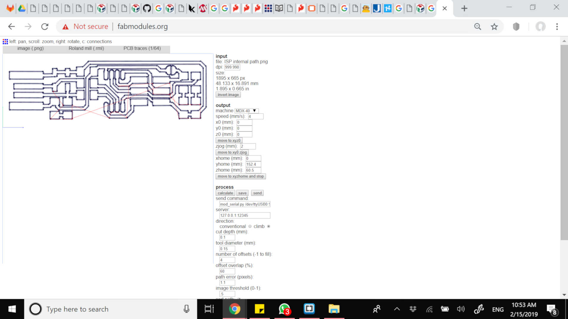 And finally you click SAVE (next to calculate) so that your file is saved as .rml -and which is the format that your drilling machine