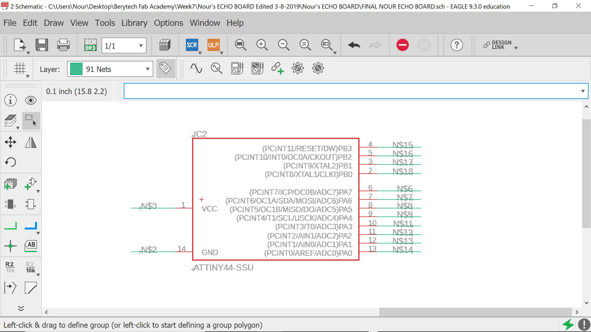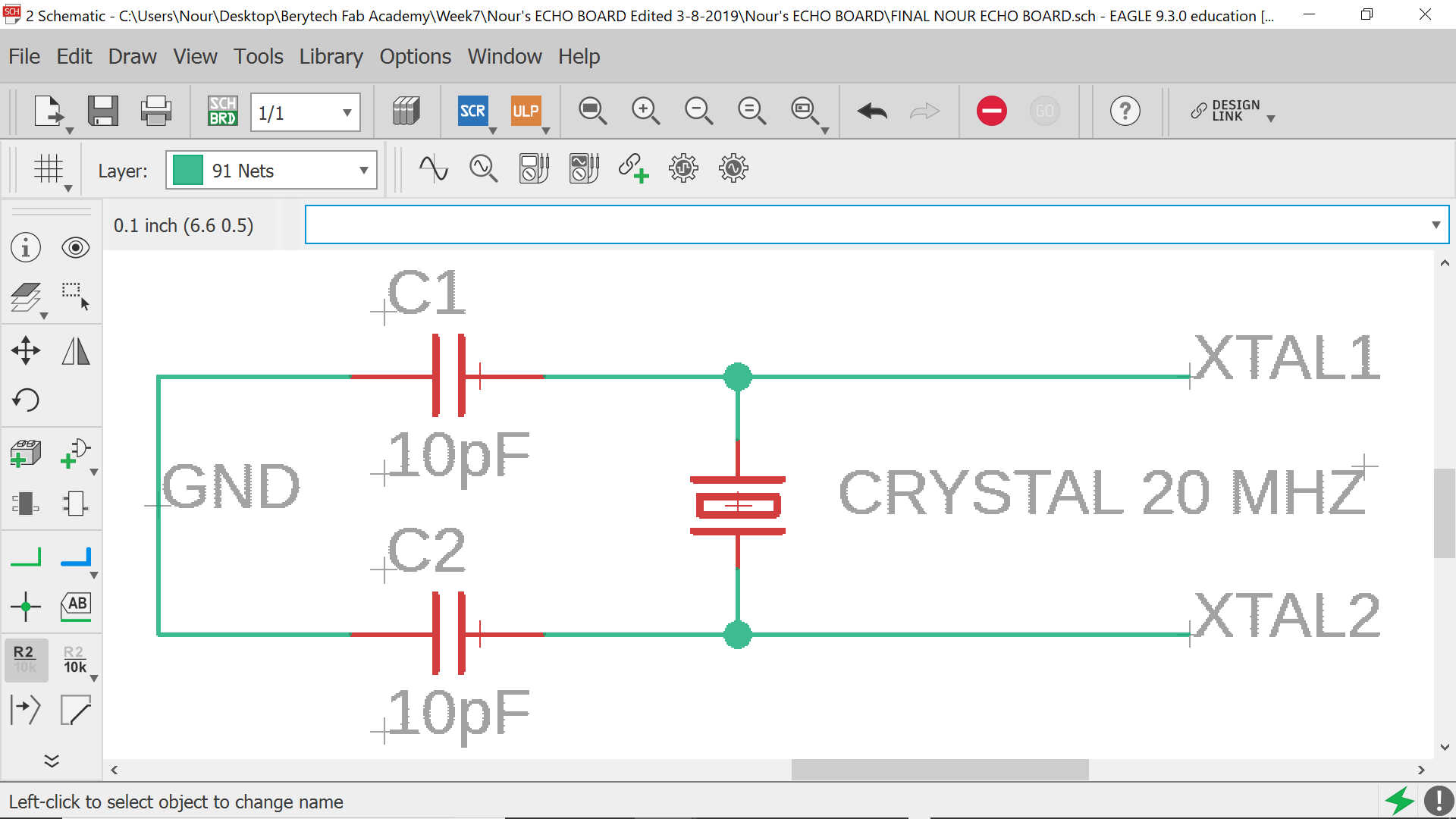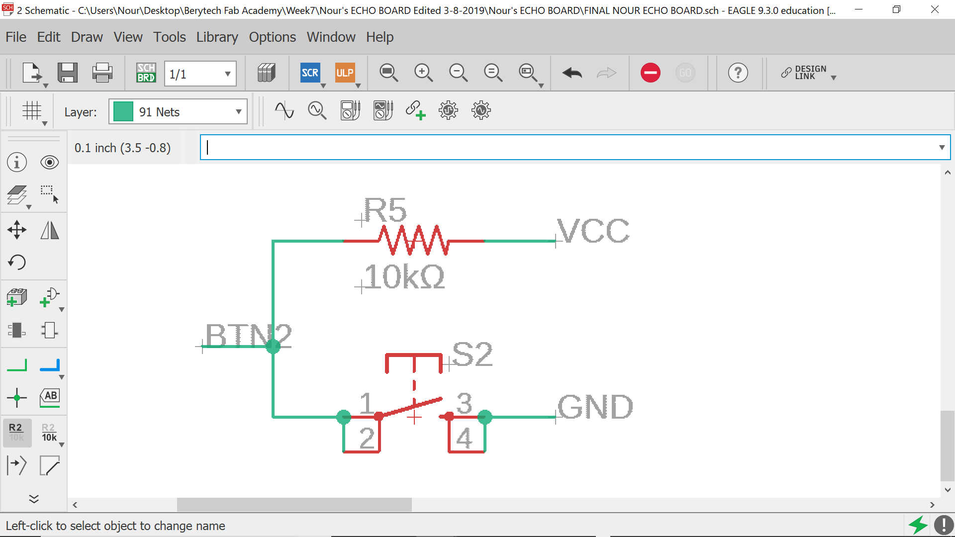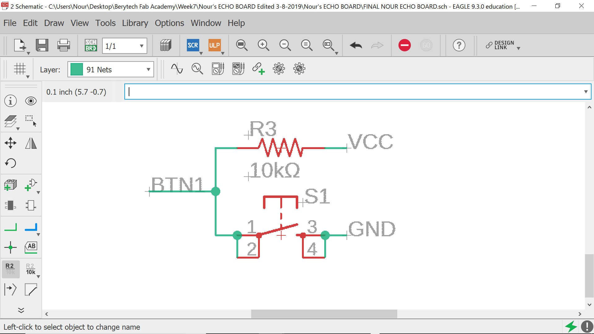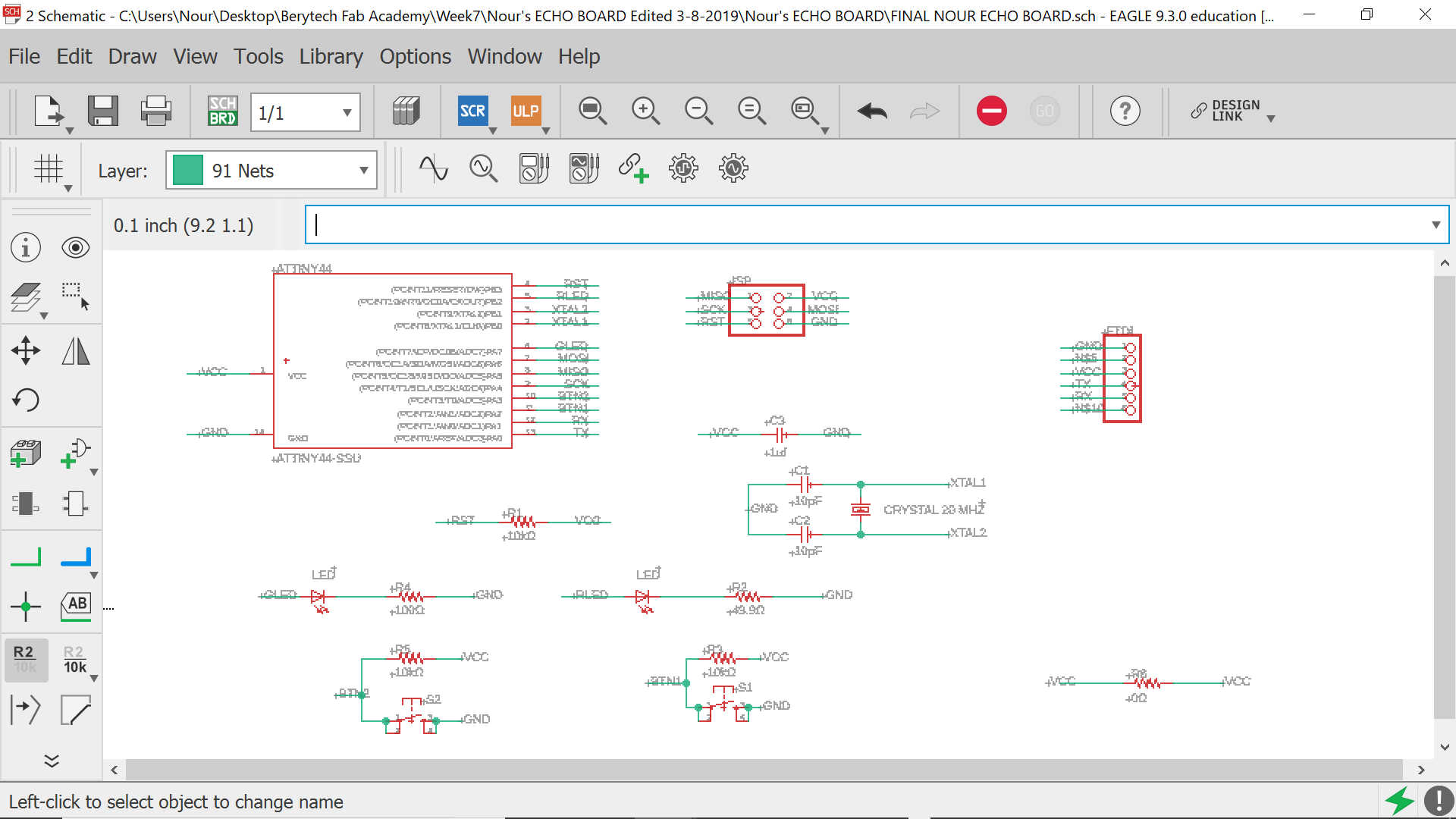We can start redrawing the echo hello-board on Eagle before adding the needed components (button and LED)