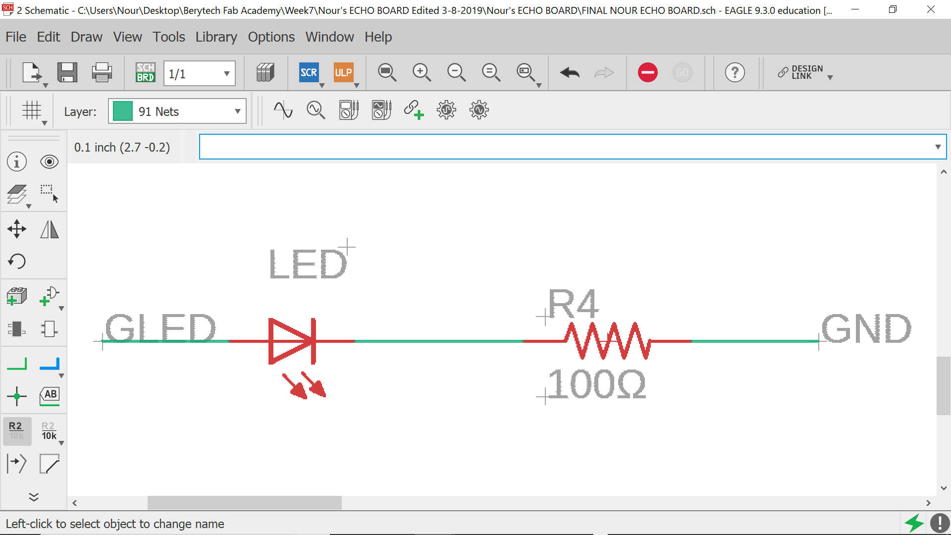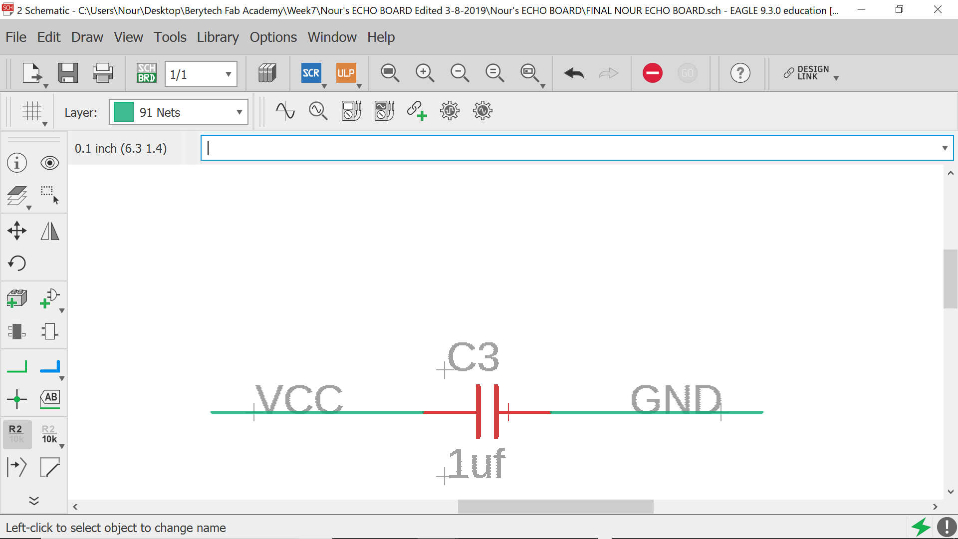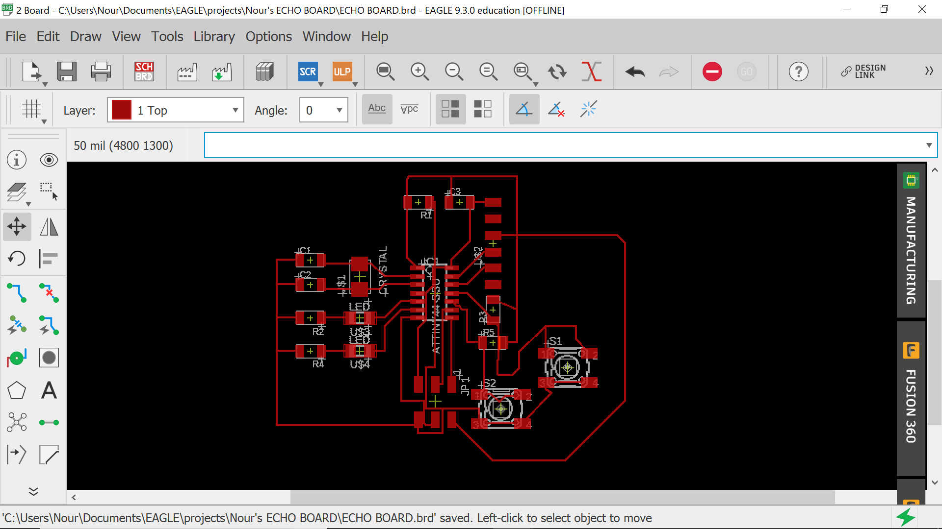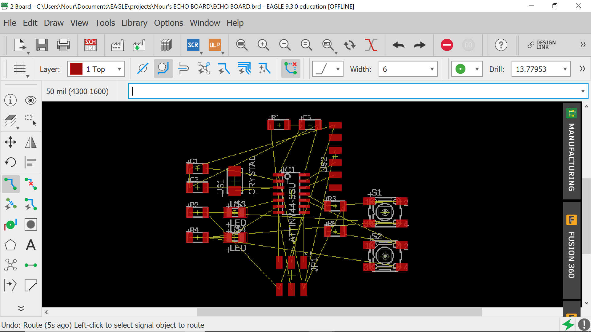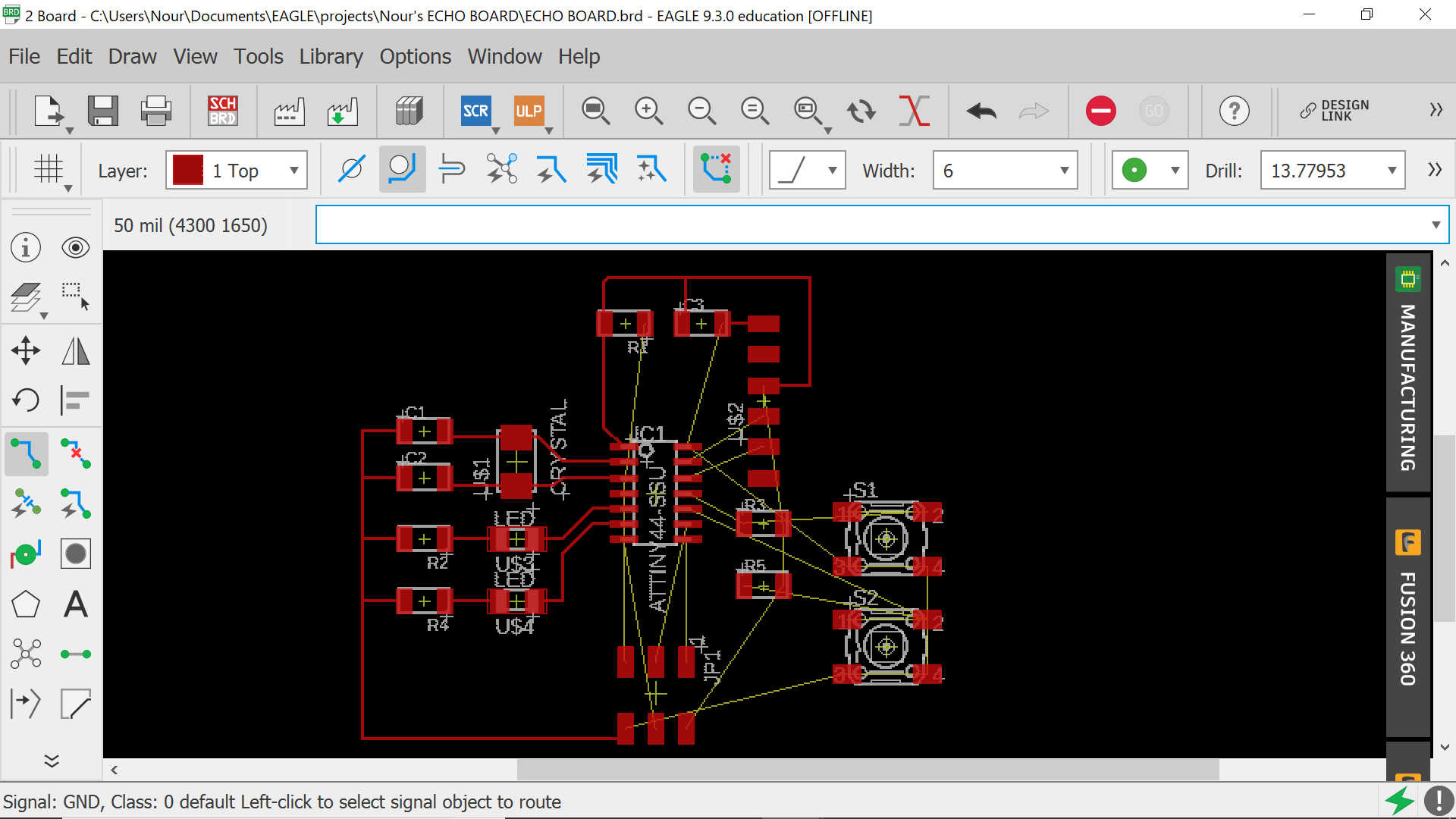 We can start redrawing the echo hello-board on Eagle before adding the needed components (button and LED)