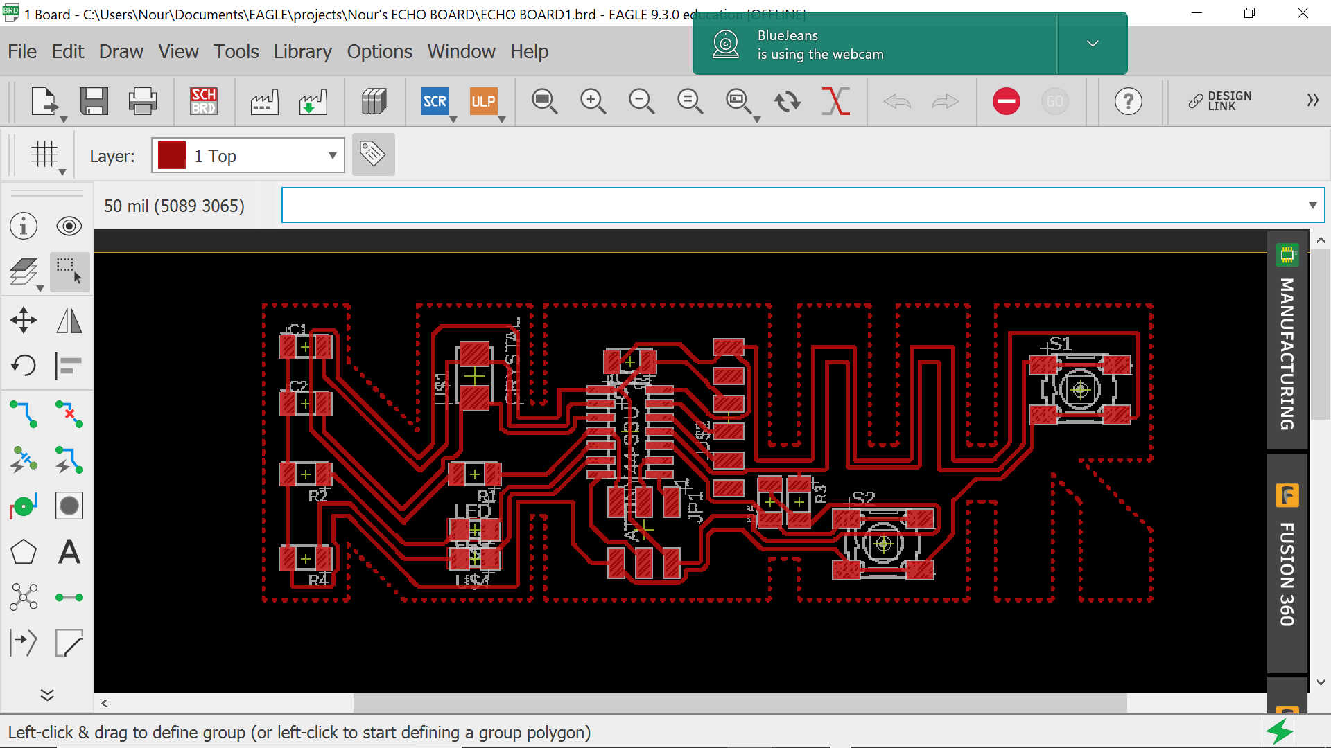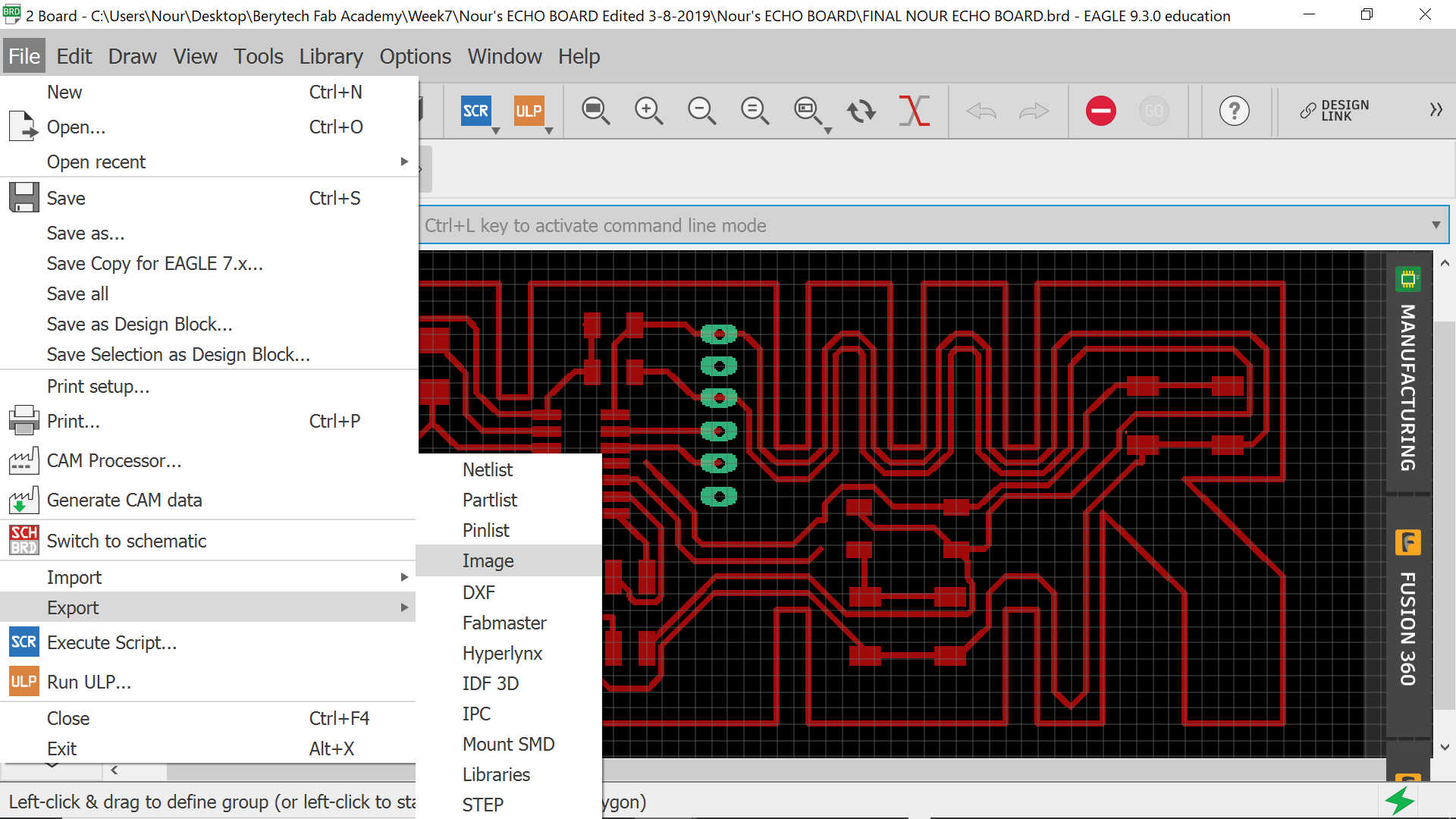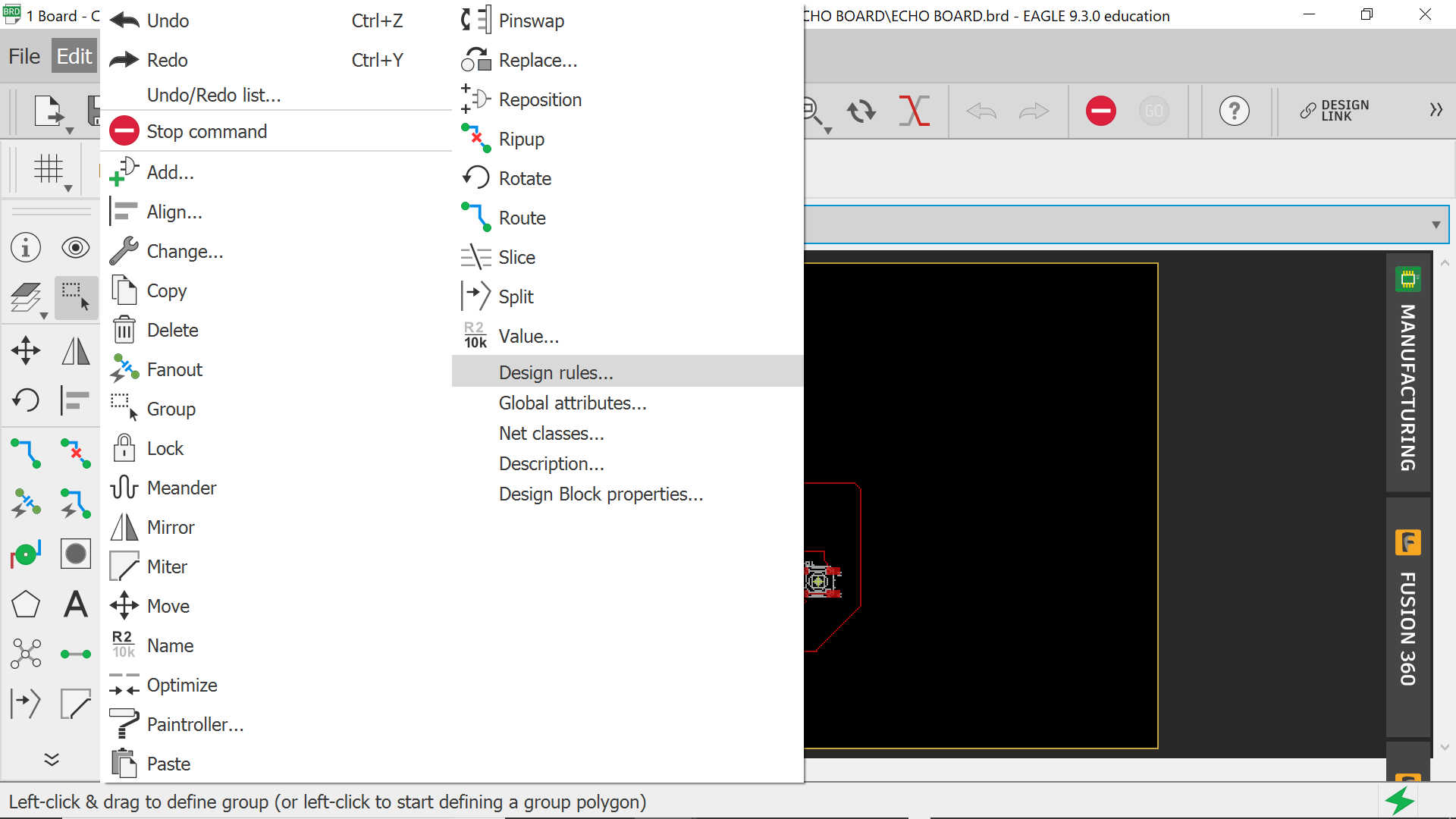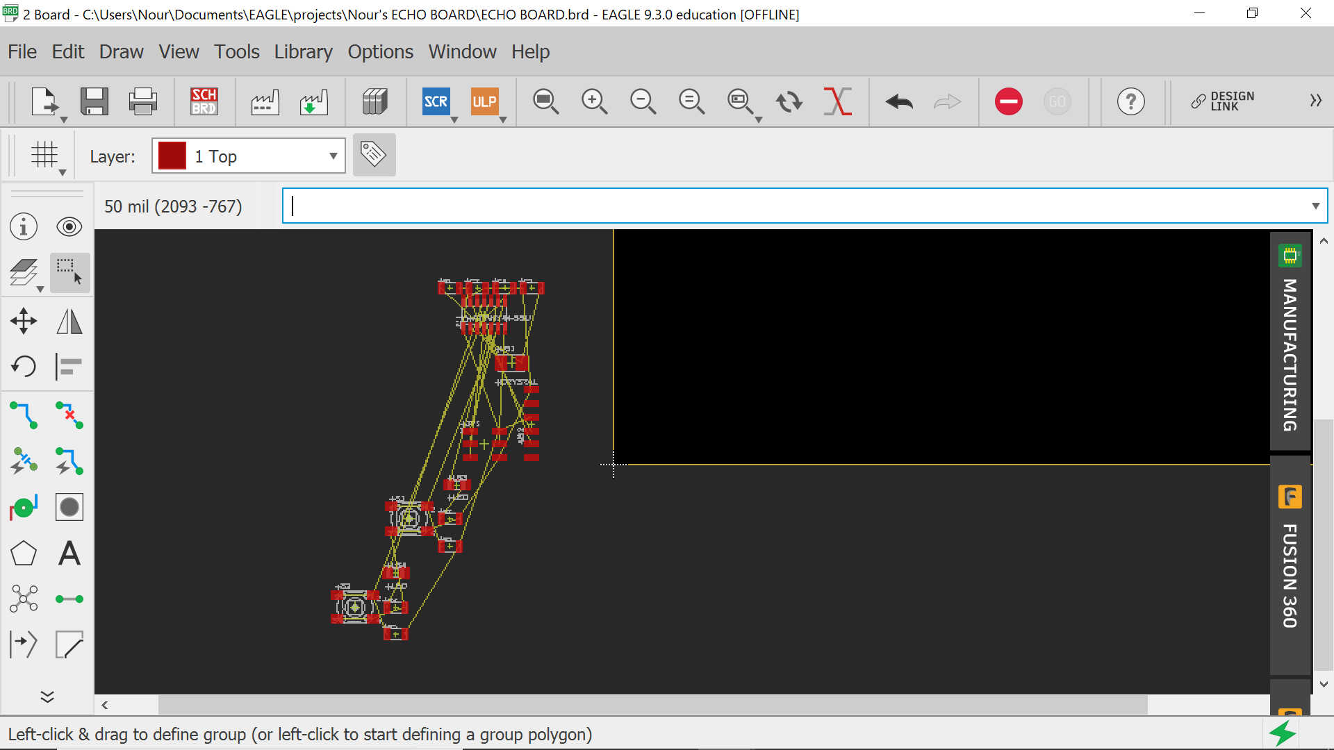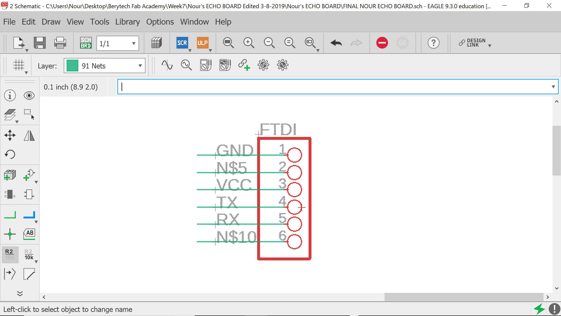 We can start redrawing the echo hello-board on Eagle before adding the needed components (button and LED)