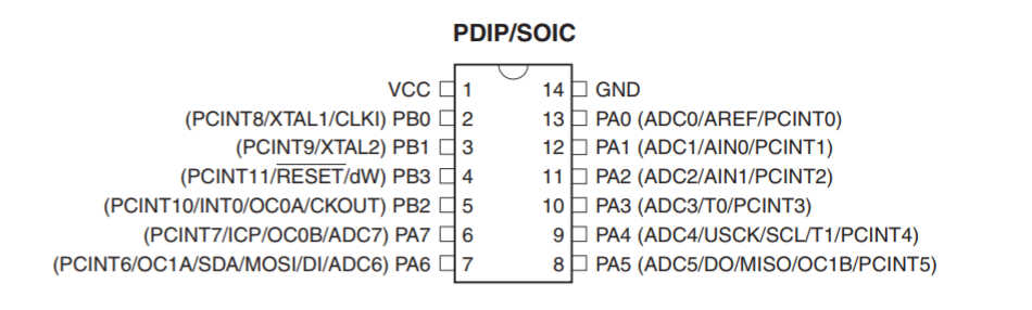 In order to write down my sketch, I need to know the below connections that explain how the ATTINY44 can be connected to an ARDUINO